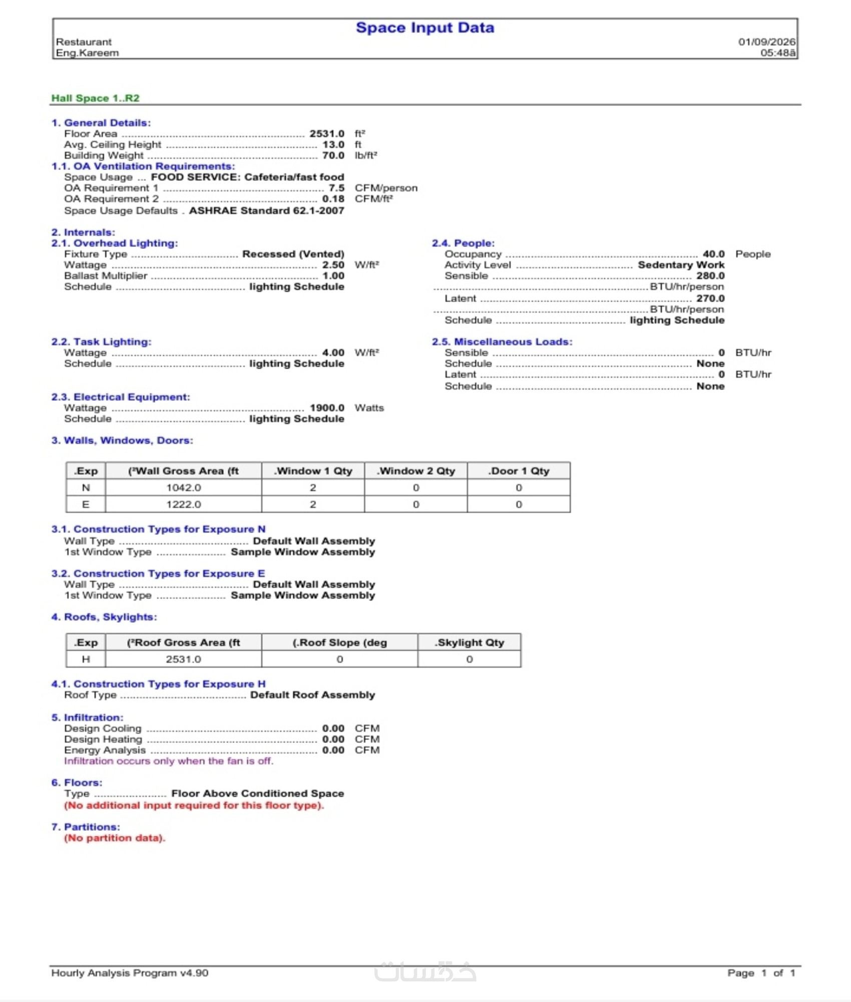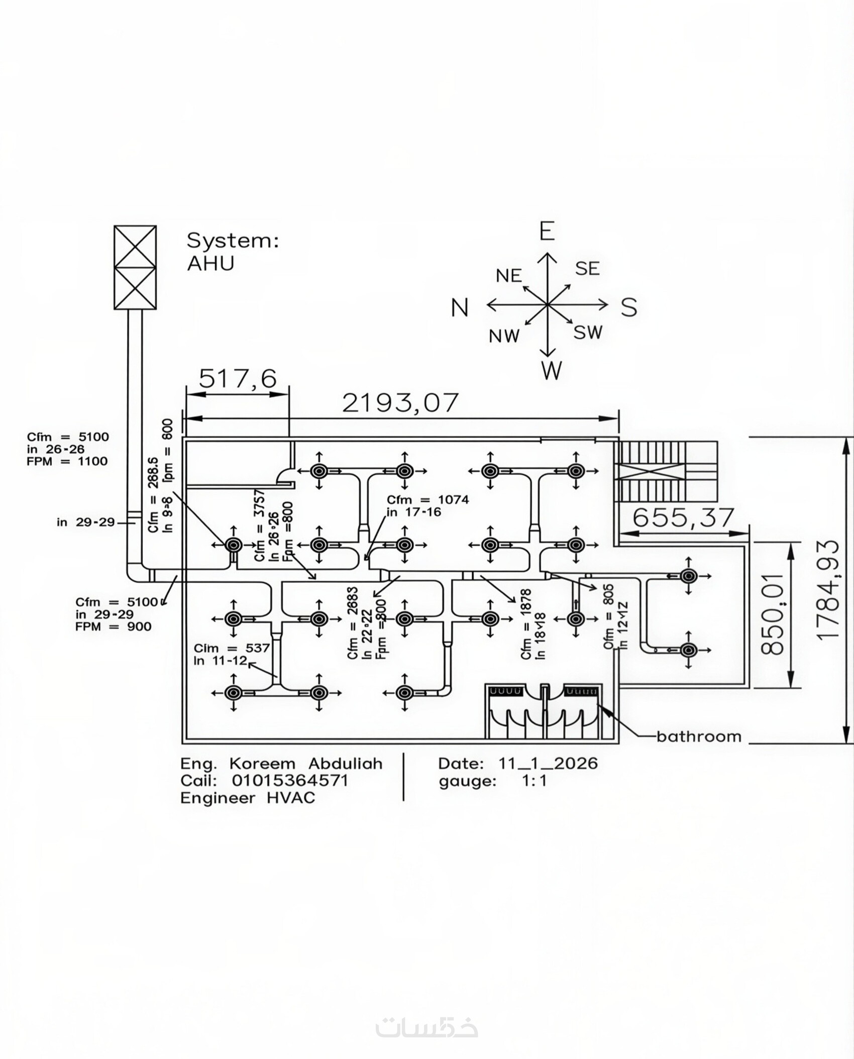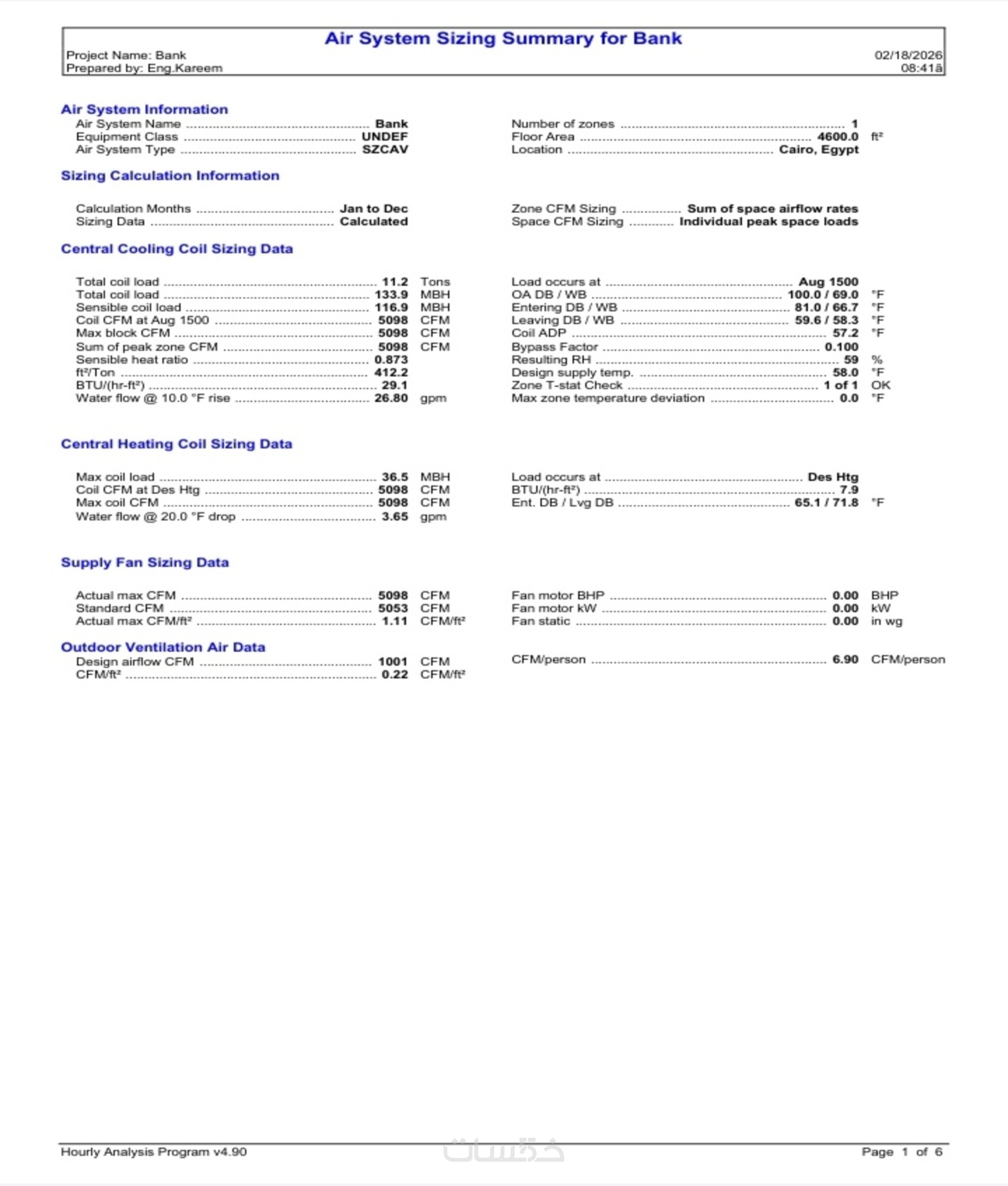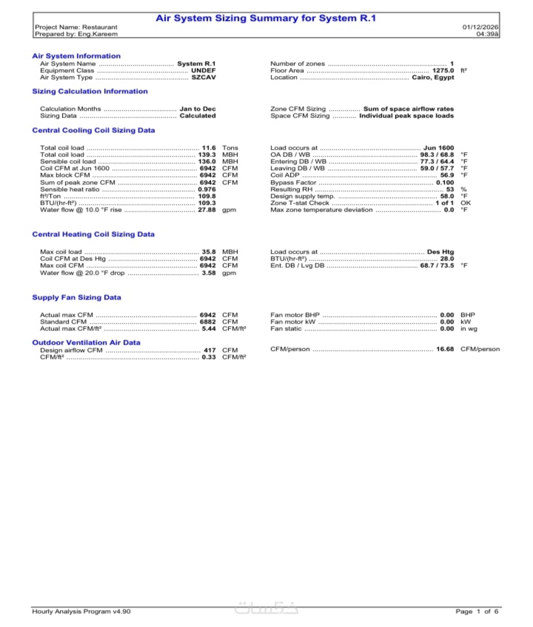 حساب الأحمال الحرارية + تصميم مبدئي لمساحة حتى 400 م²