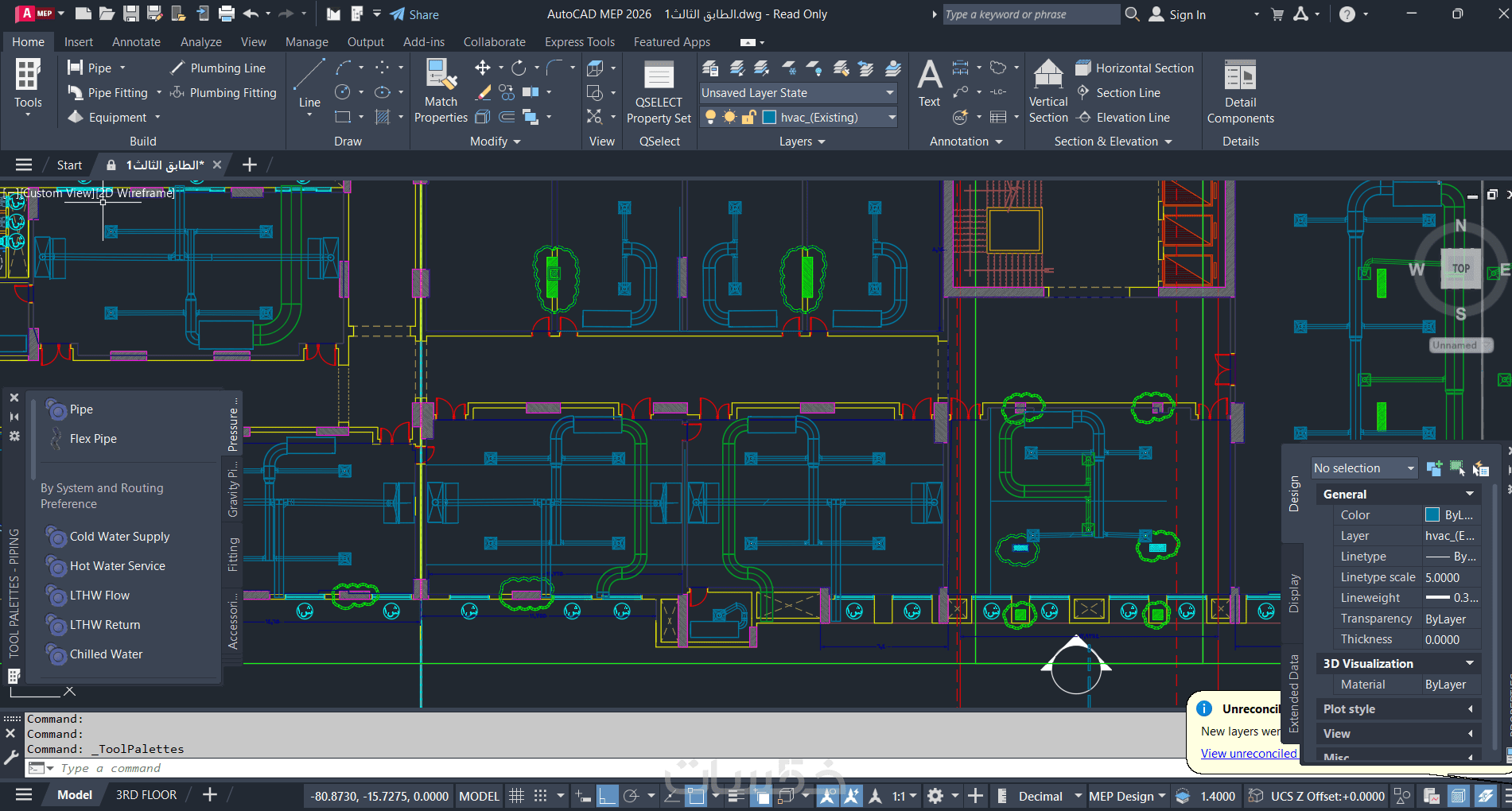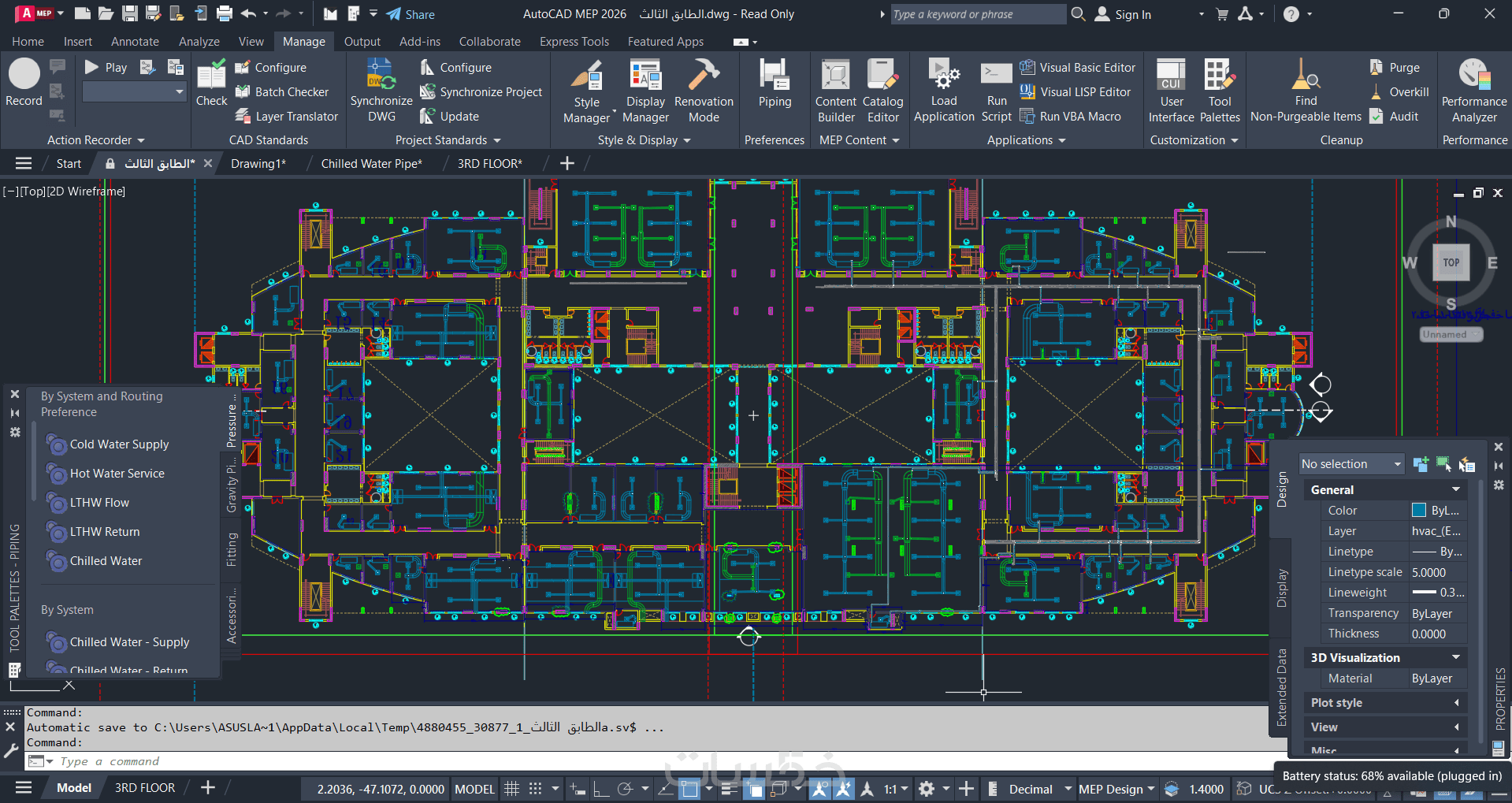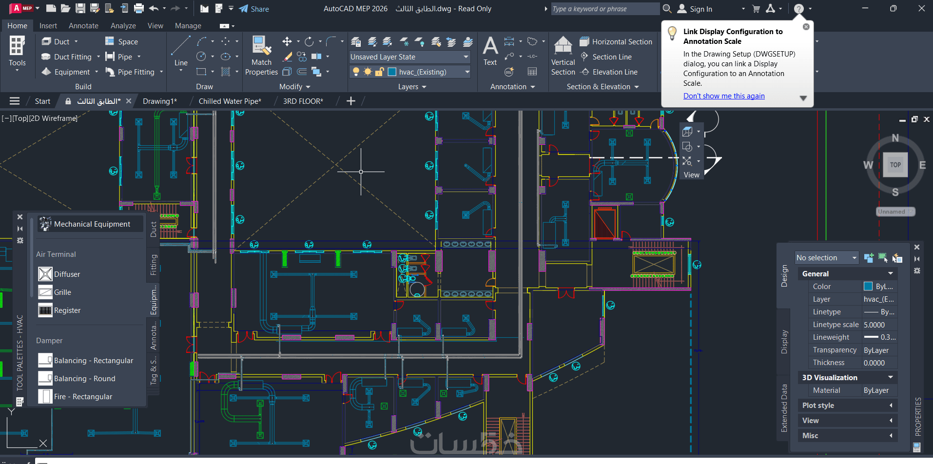 تصميم نظام تكيف hvac متكامل على برنامج Autocad MEP للمبنى بمساحة 100 متر
