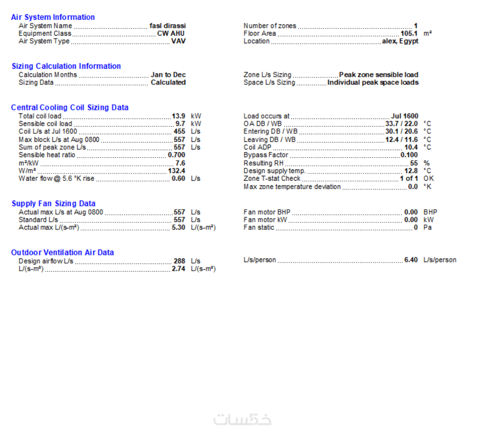 مستخرجة من برنامج Carrier HAP.