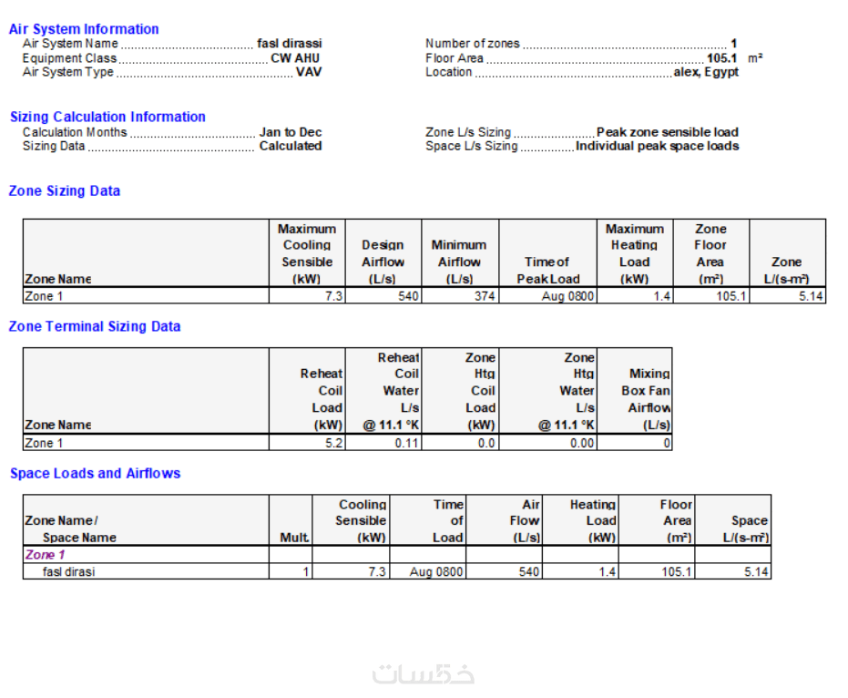 حسباب أحمال حرارية للمبنى من عدة حيزات بمساحة 100 متر مربع