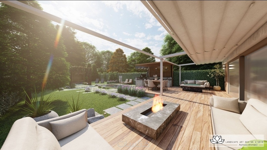 تصميم لاندسكيب لمساحة 1000 متر مربع