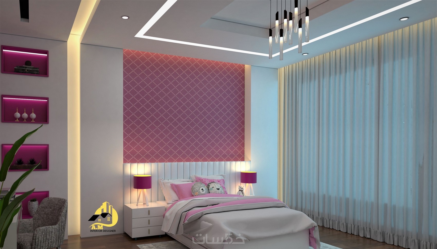 أهلاً وسهلاً بكم في تصميم الديكور لغرفة نوم بنات معي أنا المصممة اريج الغمري