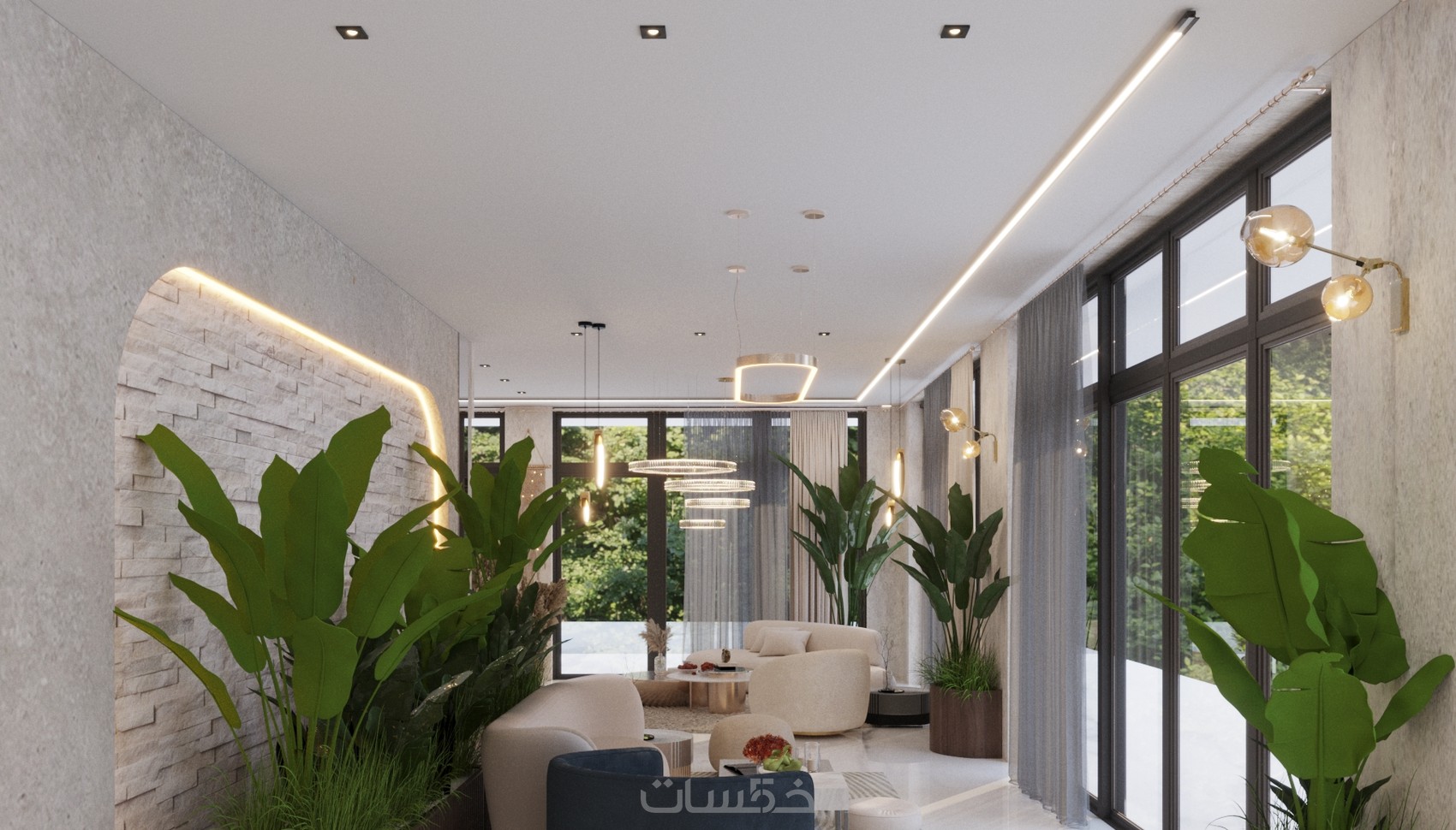 المخططات تشمل توزيع الانارة ونوع مادة الاكساء ودرجة الالوان المستخدمة وغيرها من ضروريات التنفيذ .