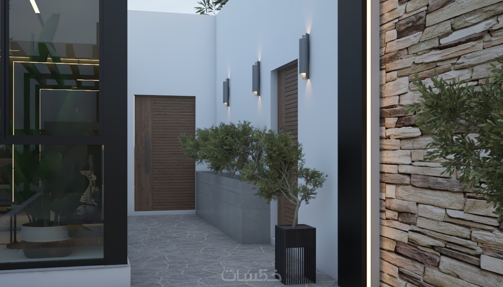 باستخدام برامج ( photoshop -AutoCAD - 3ds max - vray ).