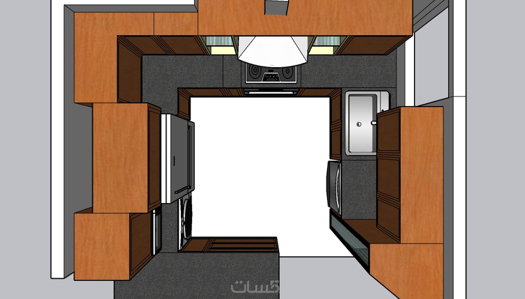 وعلي حسب الاجهزه المراد وضعها ف المطبخ بيتم عمل التصميم المناسب