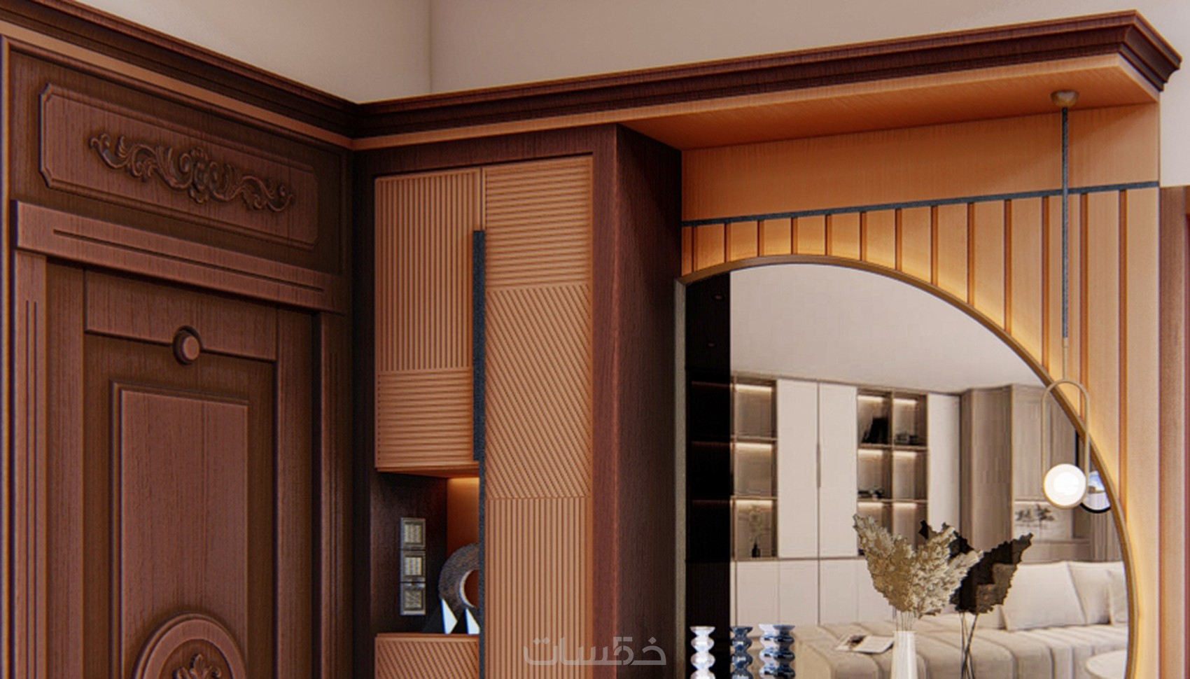 تصميم مدخل شقة سكنية باستخدام المنجور الخشبي