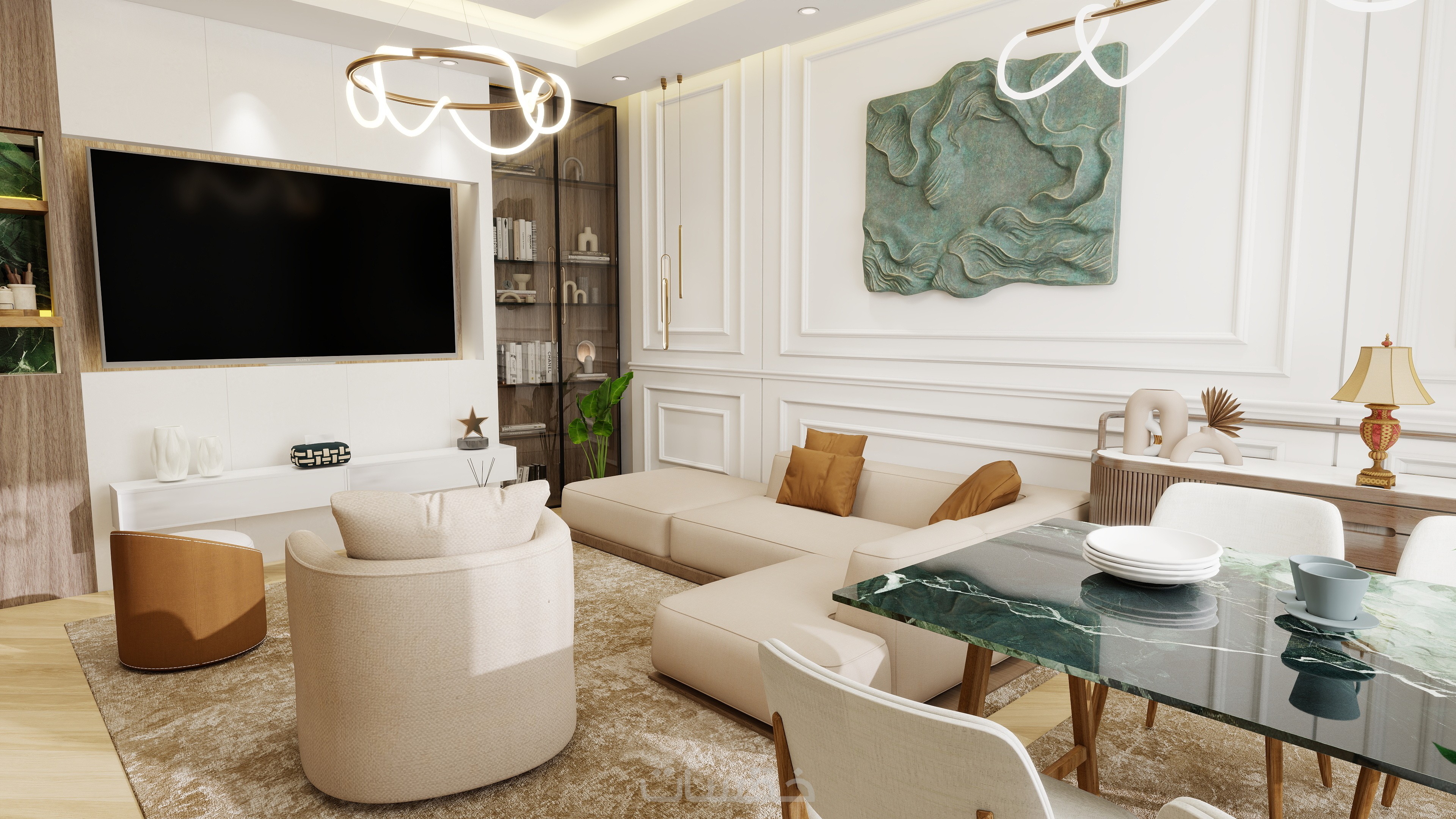 النتيجة؟ تصميم داخلي فريد يتناغم مع أسلوب حياتك ويوفر لك بيئة مليئة بالراحة والإبداع.
