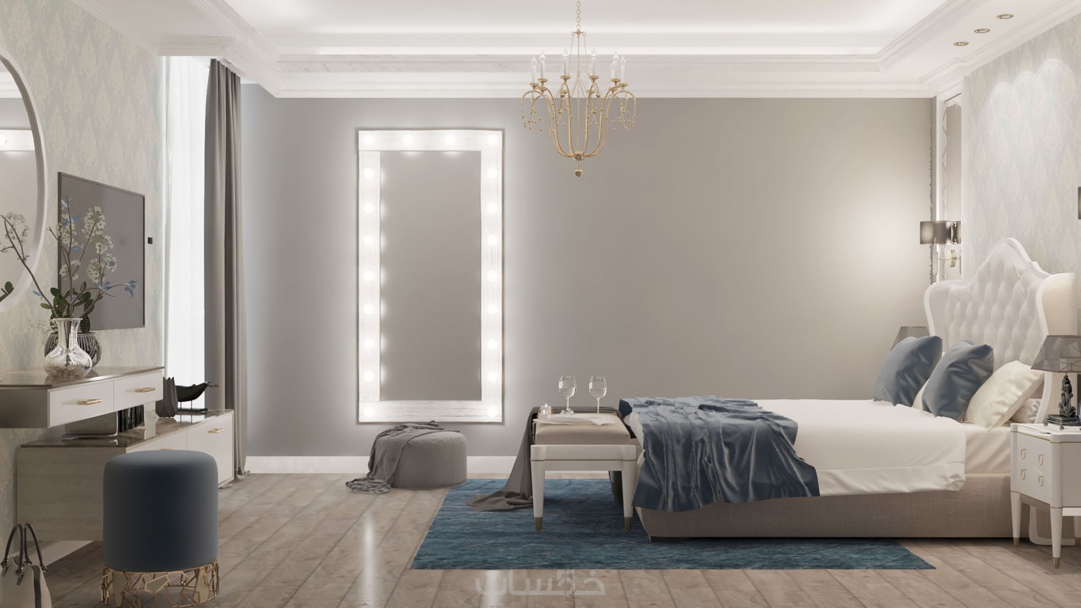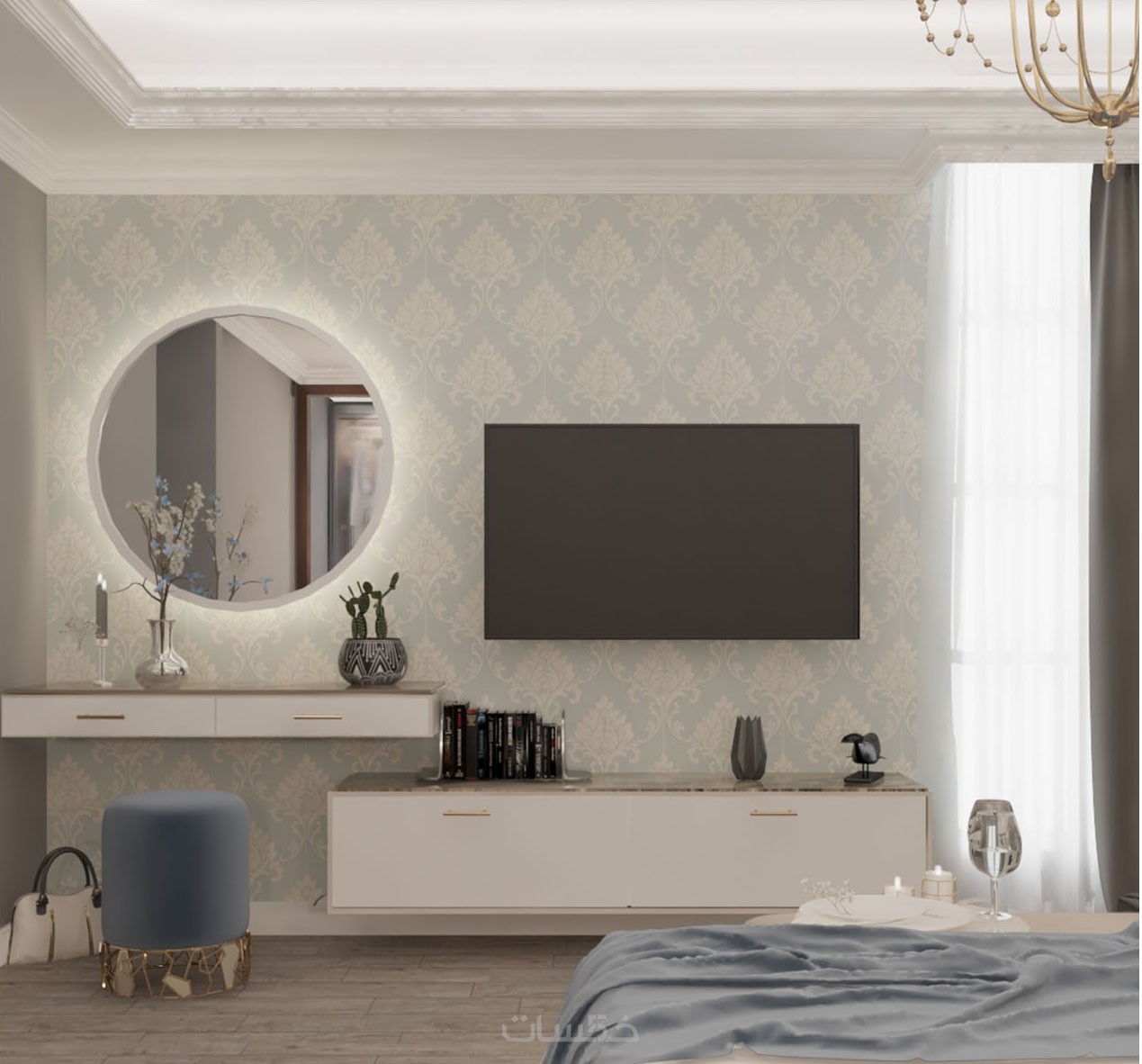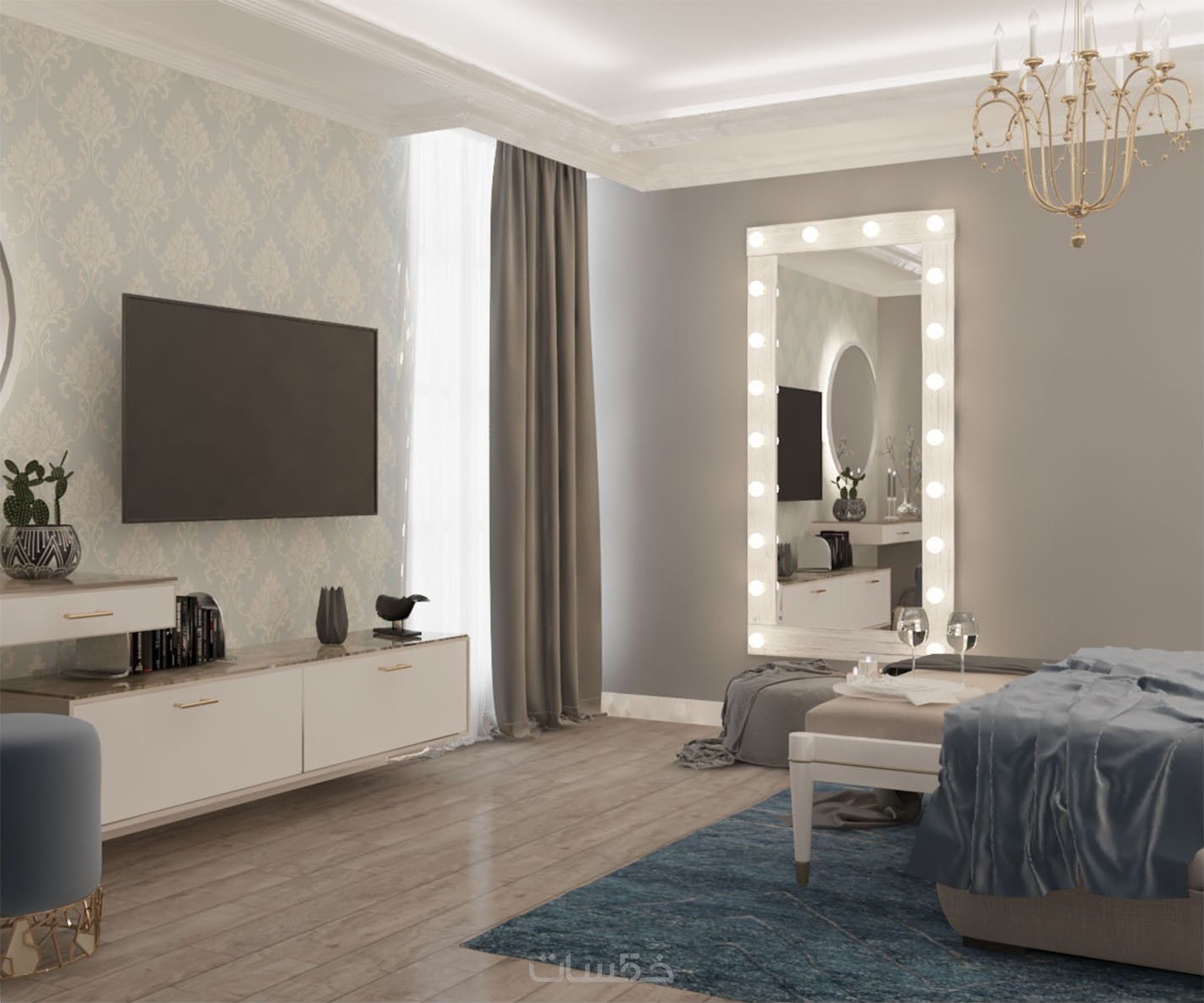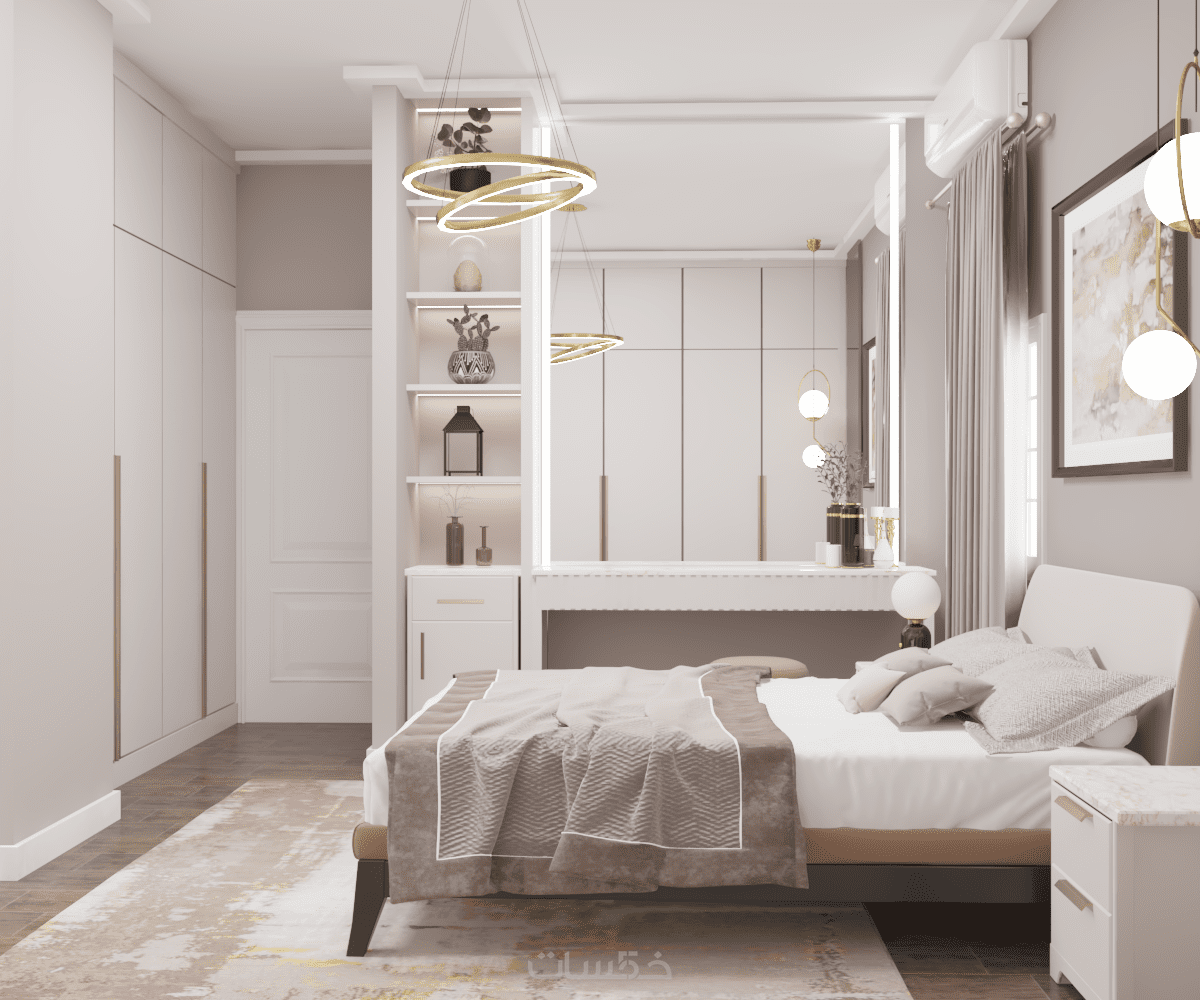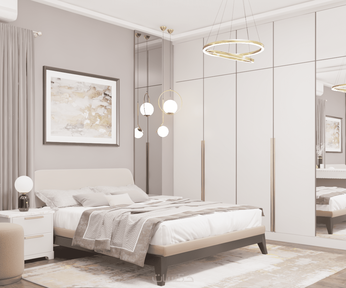غرفة نوم مساحة 25 متر مربع + حمام داخل الغرفة + غرفة ملابس