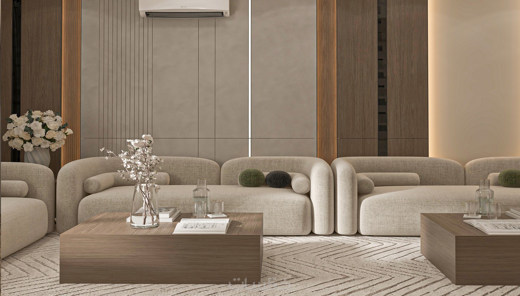 تصميم خمس غرف ( مجلسين مع مطبخ مع معيشة ) مع صور ثري دي للتصميم بمساحة 150
