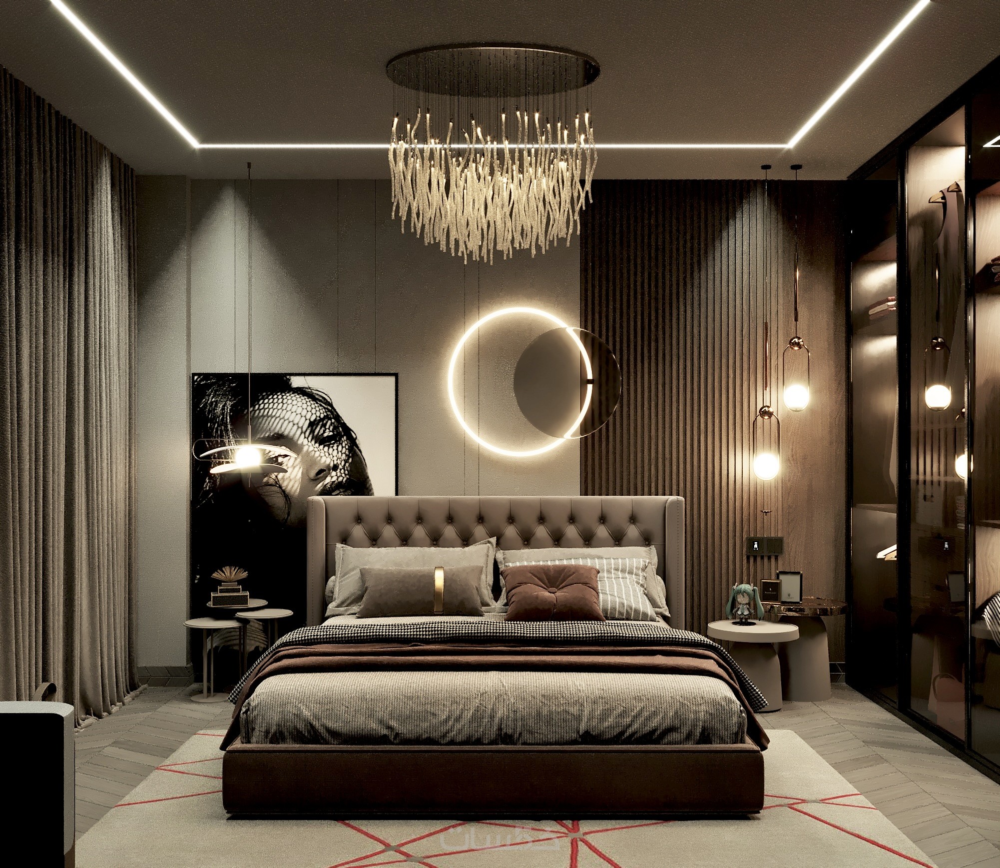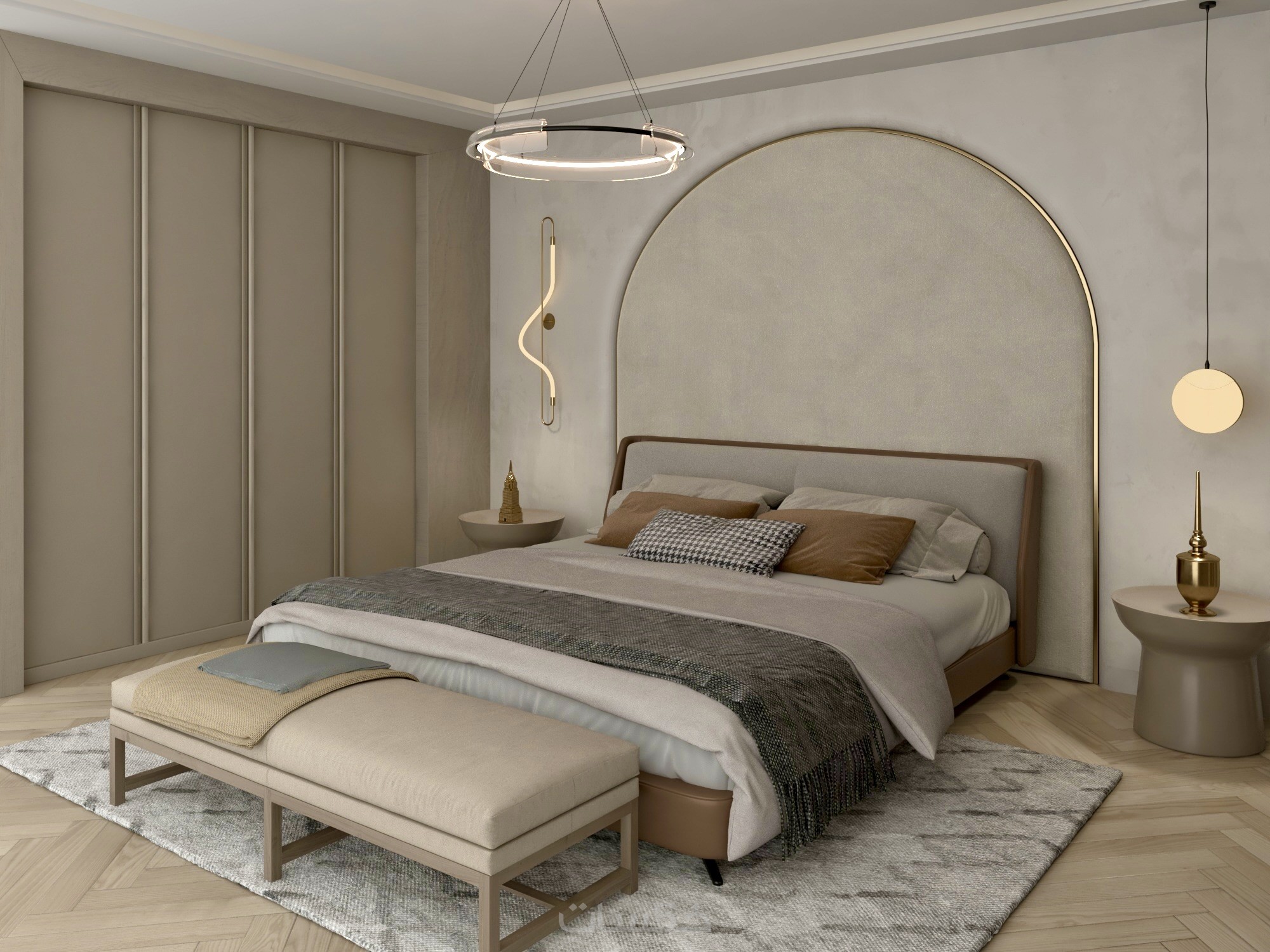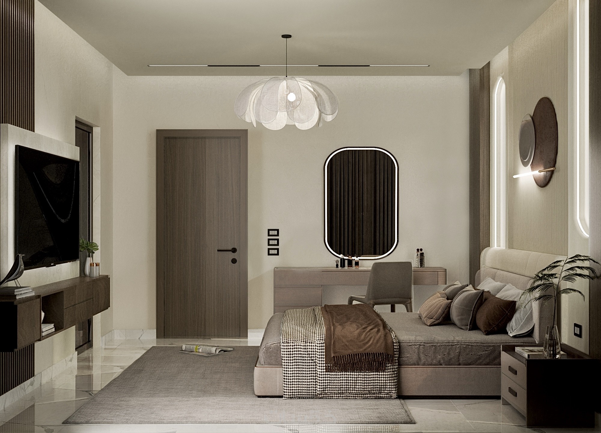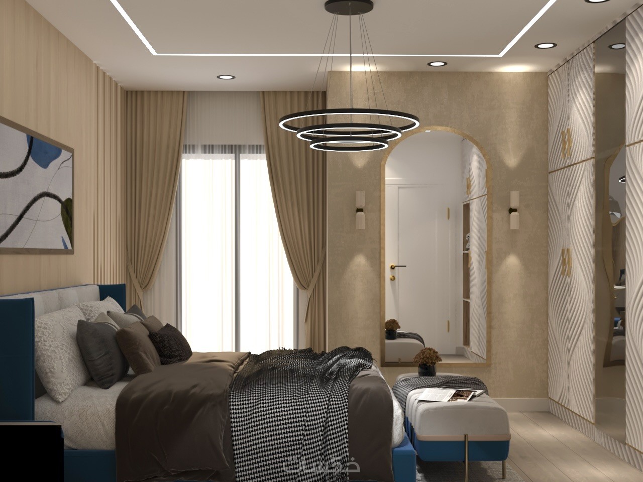 تصميم داخلي لغرفة نوم بمساحة 50 متر مربع