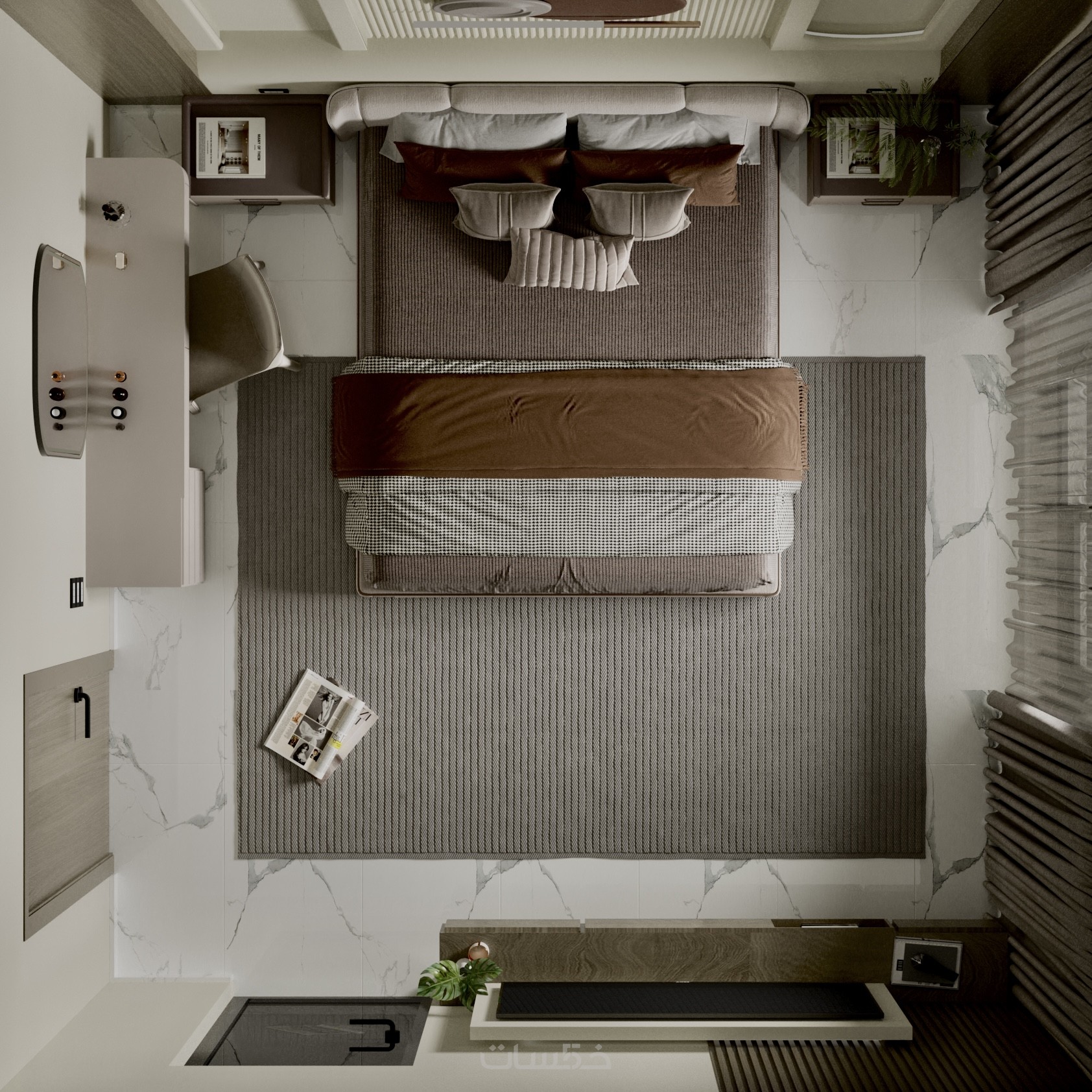 تصميم داخلي لغرفة نوم بمساحة 25 متر مربع
