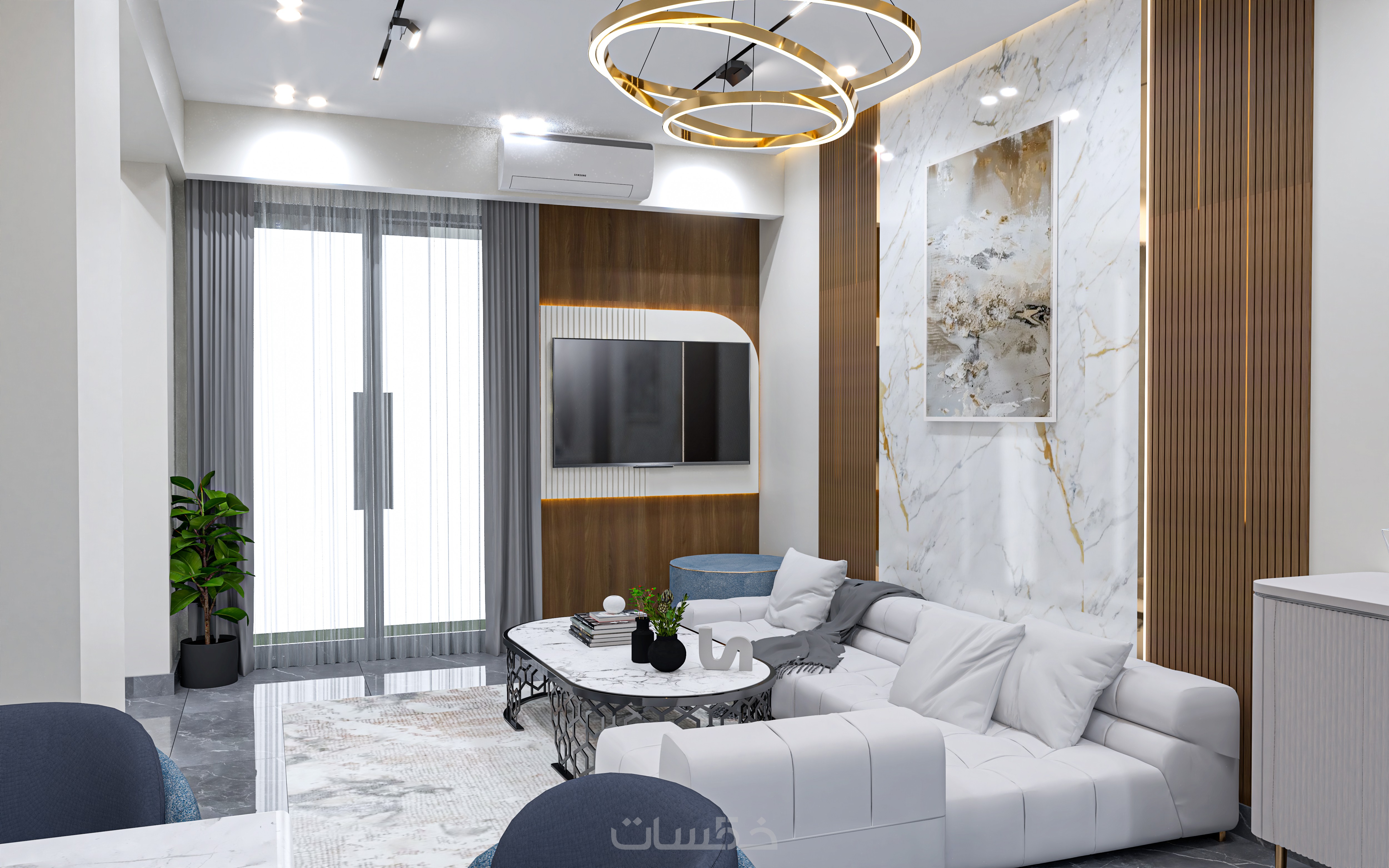 - تصميم داخلي 3D وتقديم مناظير شاملة للعمل بجودة عالية بصيغة JPG و PNG.