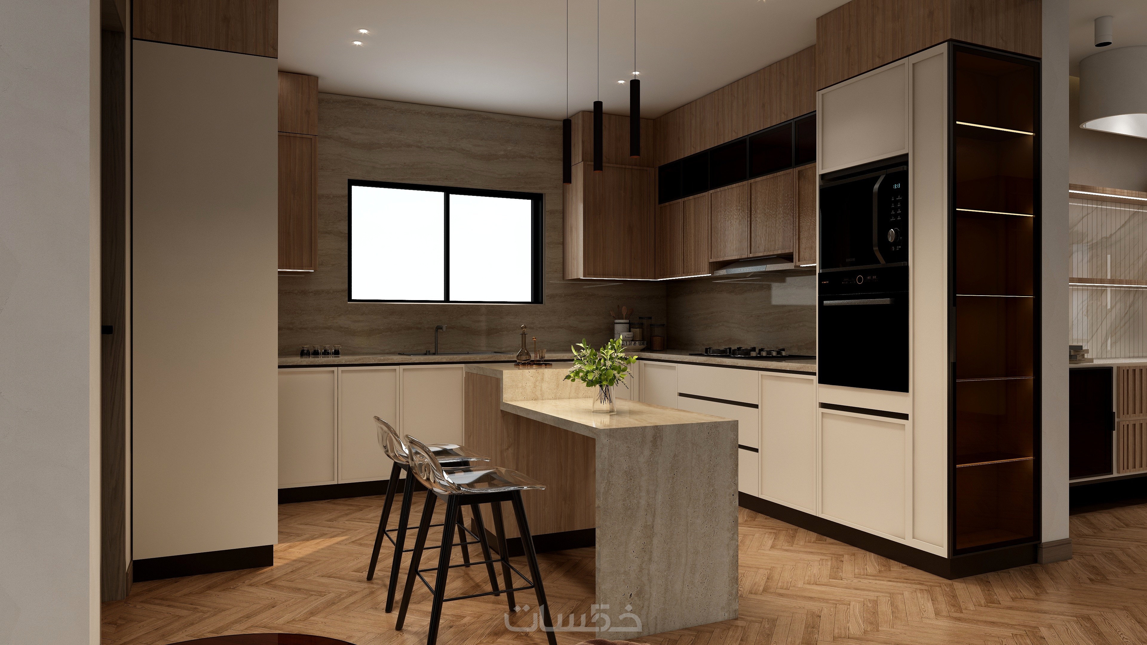 مخطط معماري ثنائي الأبعاد مفصل وصور واقعية ثلاثية الأبعاد عالية الجودة، باستخدام أحدث البرامج (AutoCAD, sketch,coohom, Lumion).