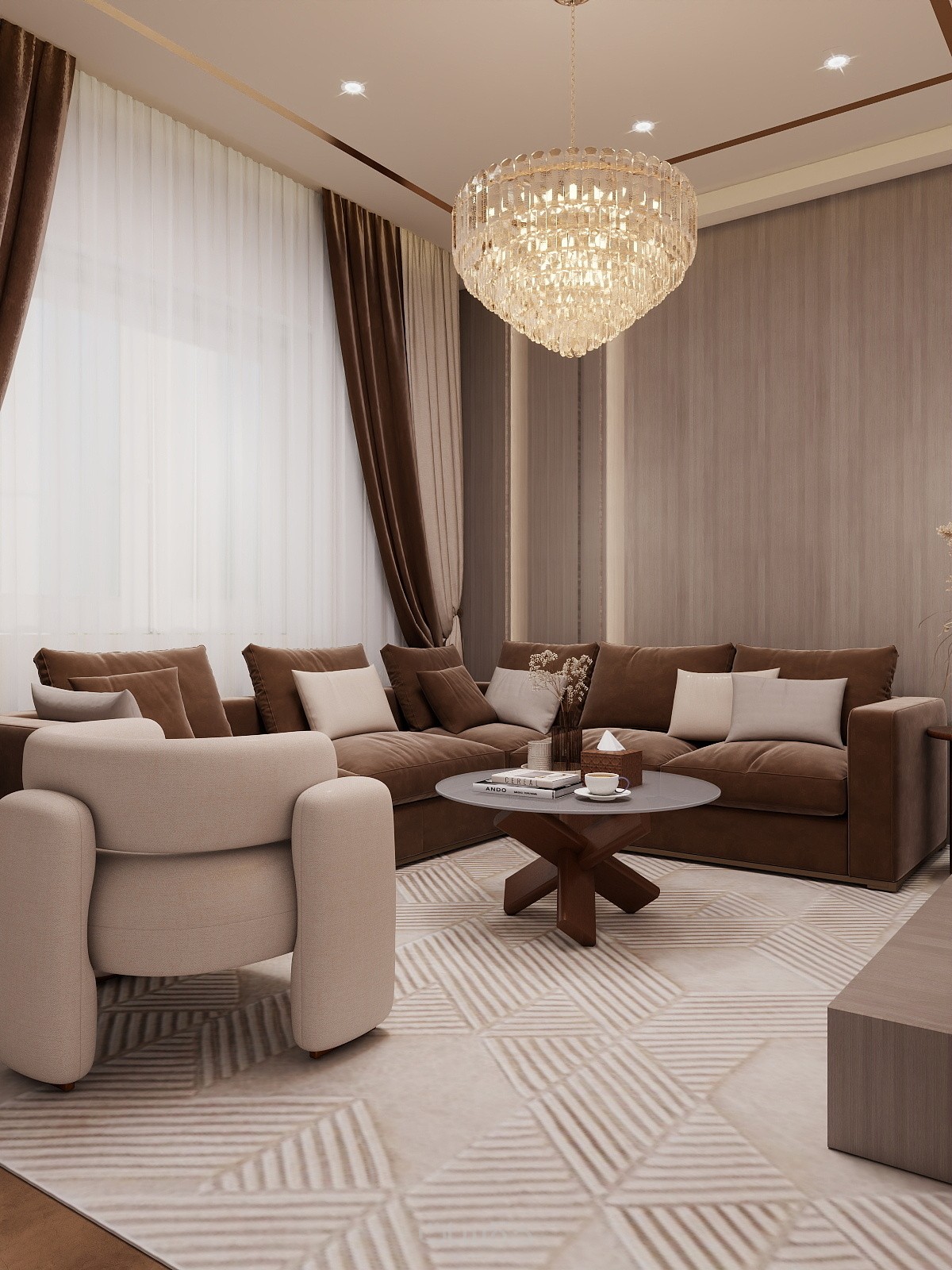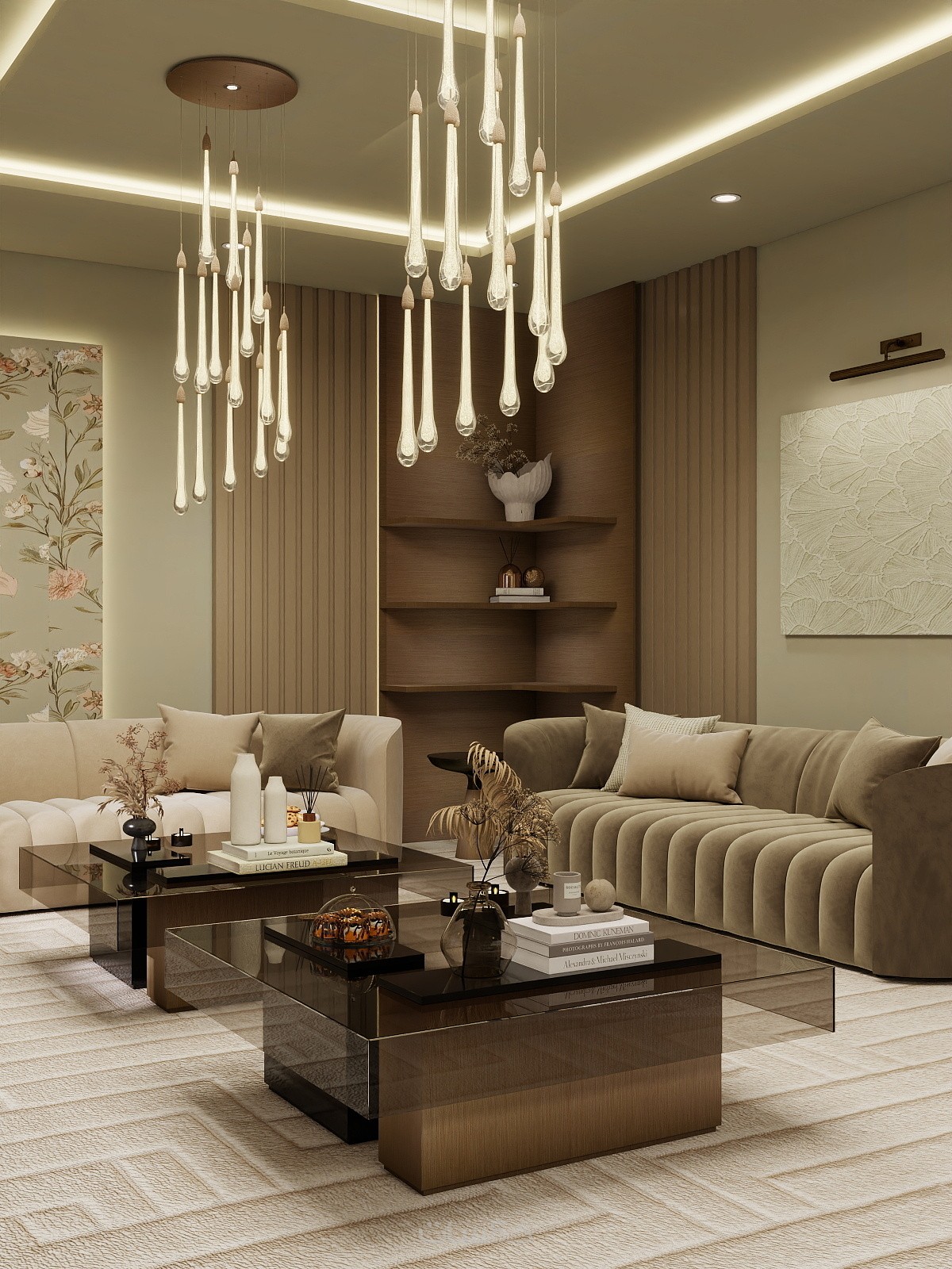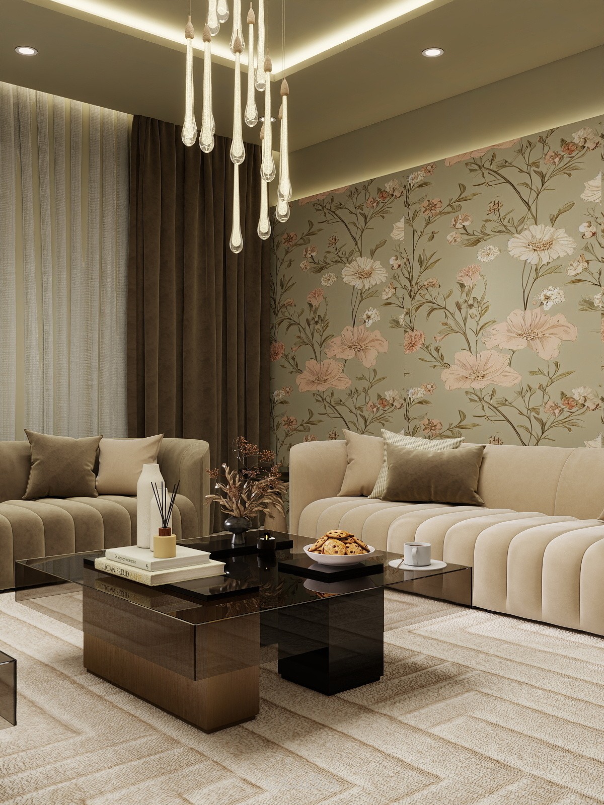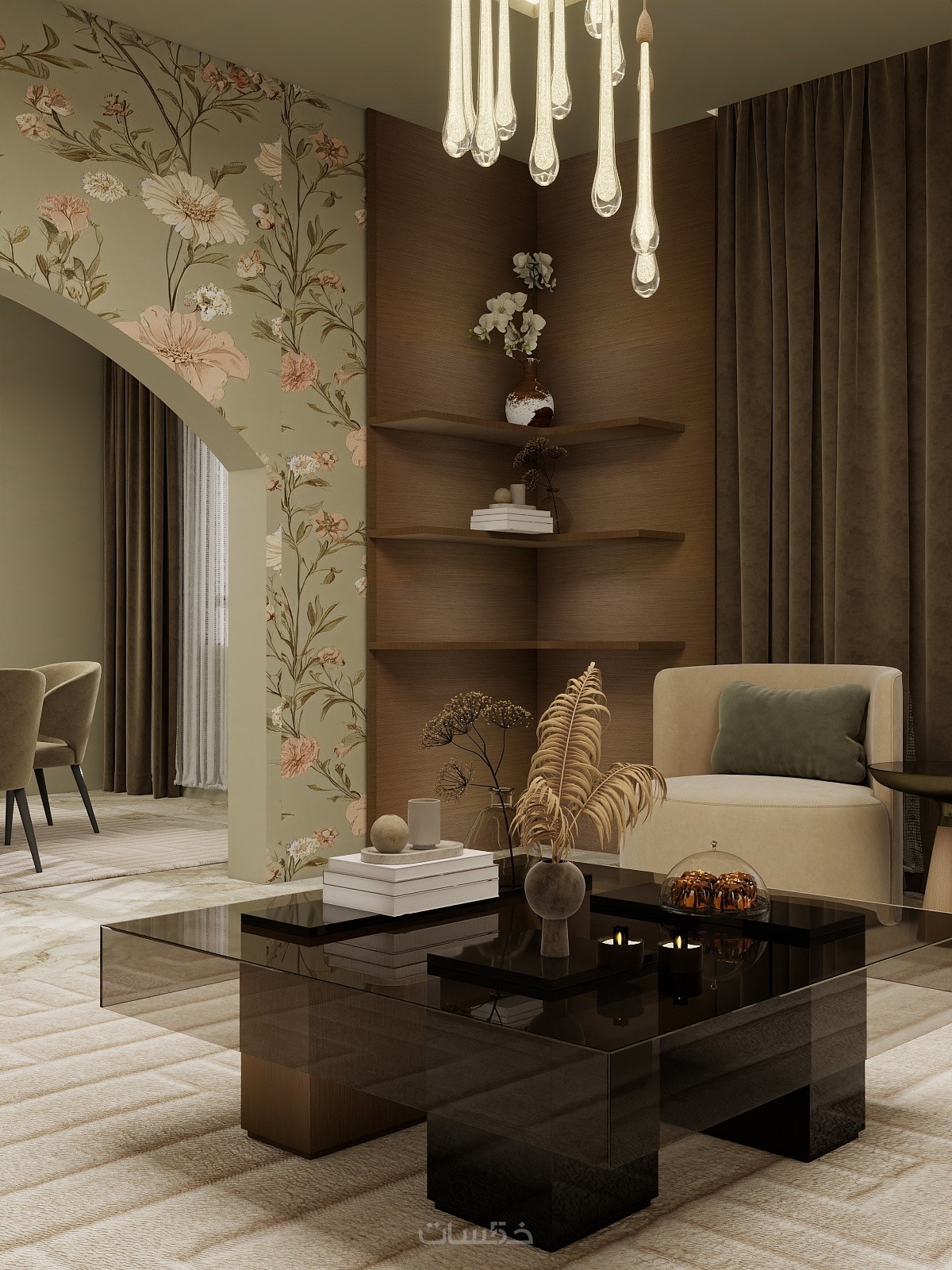 بحلول تصميمية مبتكرة مع اختيار الالوان والخامات وتوزيع الاثاث ولاضاءة