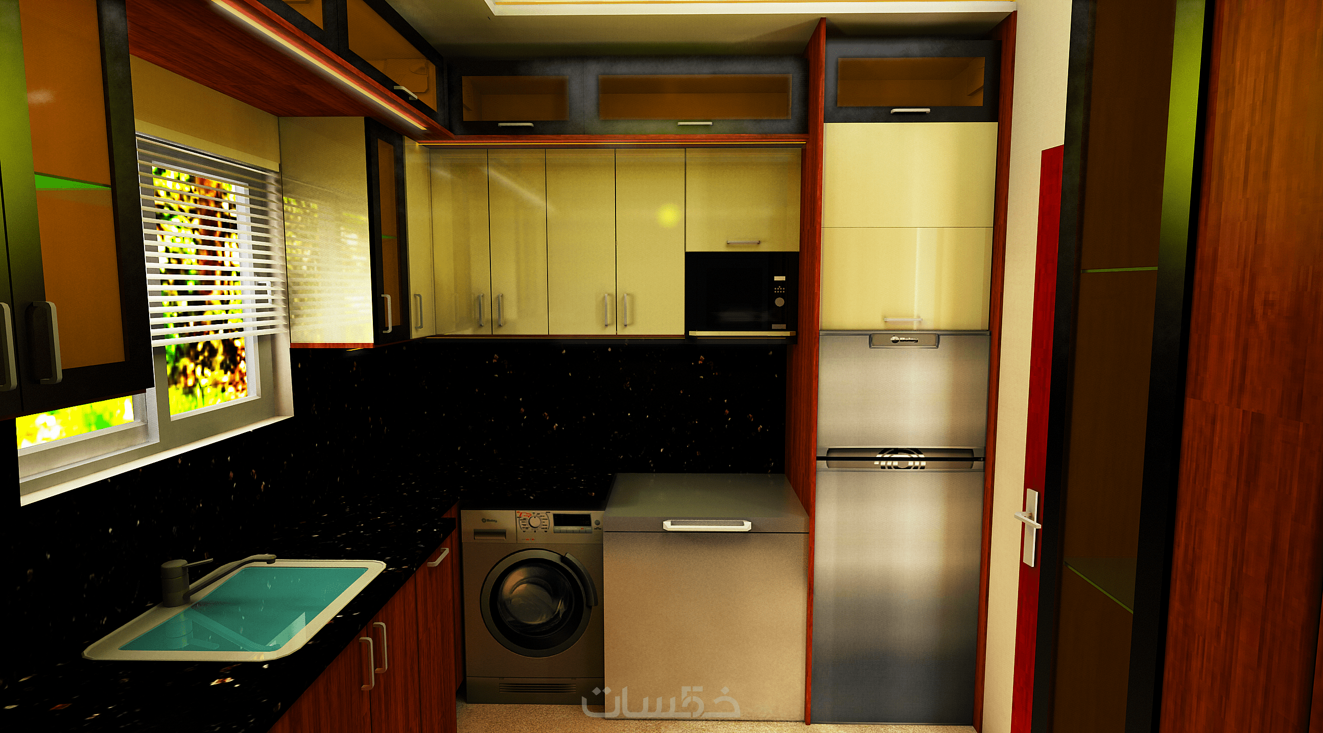 تصميم مطبخ كامل حتى مساحة 3 متر مربع.