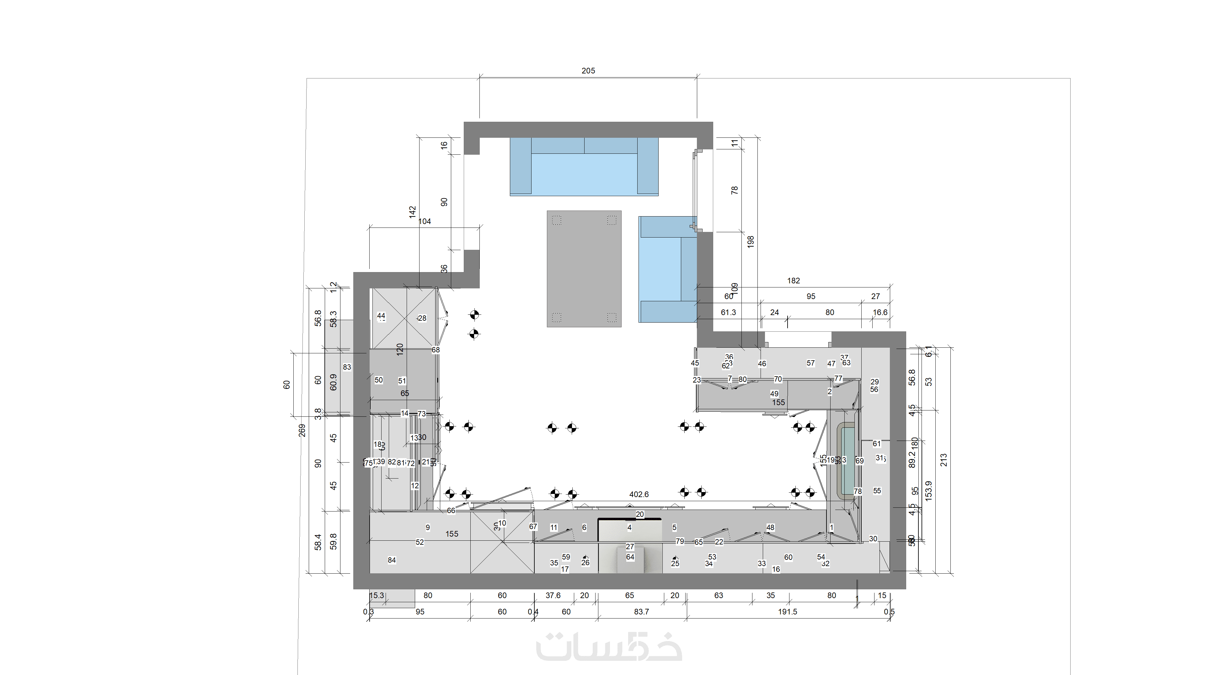 أدرس مساحتك بدقة وأعملك أفضل توزيع للأجهزة والخزائن لتحقيق أقصى استغلال للمكان، مع الحفاظ على راحتك أثناء الاستخدام اليومي.