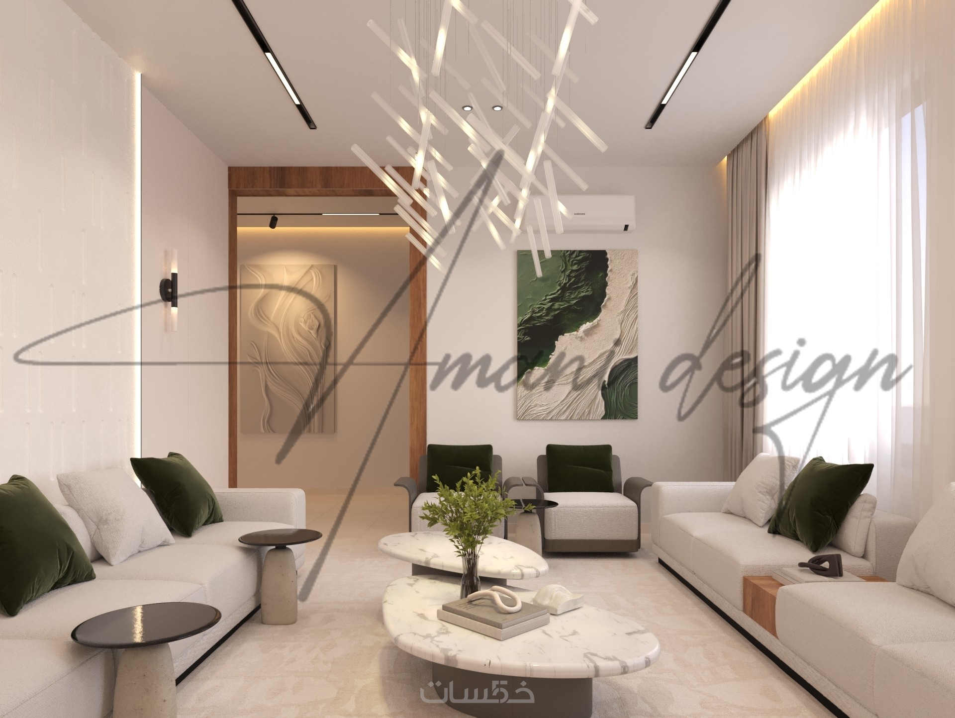 تصميم داخلي لفراغ او فراغين او 3 فراغات بمساحة 100 متر مربع