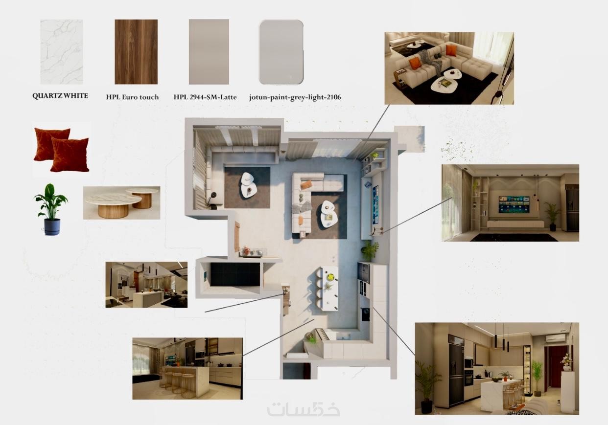 تصميم داخلي ثلاثي الأبعاد (3D) لفراغ واحد