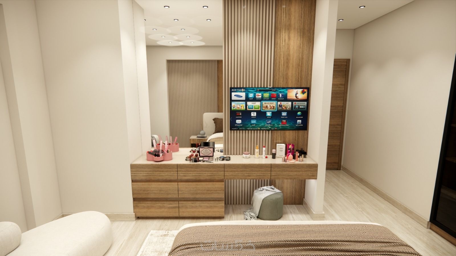أقدم لك تصميم غرفة نوم ثلاثي الأبعاد (3D) يساعدك على تصور الشكل النهائي للمكان قبل التنفيذ، مع مراعاة استغلال المساحة بشكل عملي، وتنسيق الألوان والخامات بما يتناسب مع ذوقك سواء مودرن أو نيو كلاسيك.