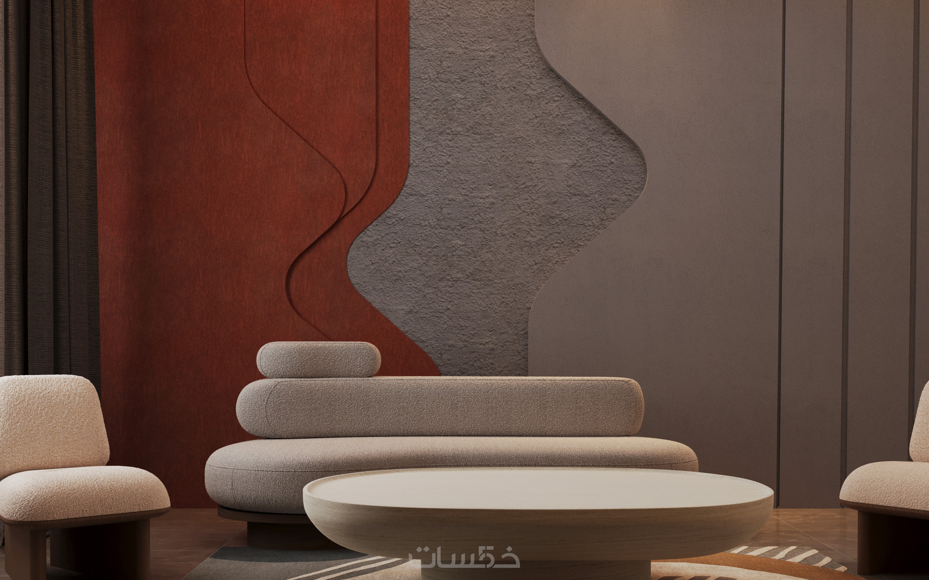 تصميم متكامل لفراغ ليفينج أو ريسبشن بأسلوب حديث ومريح.