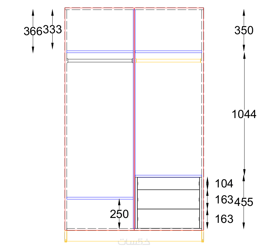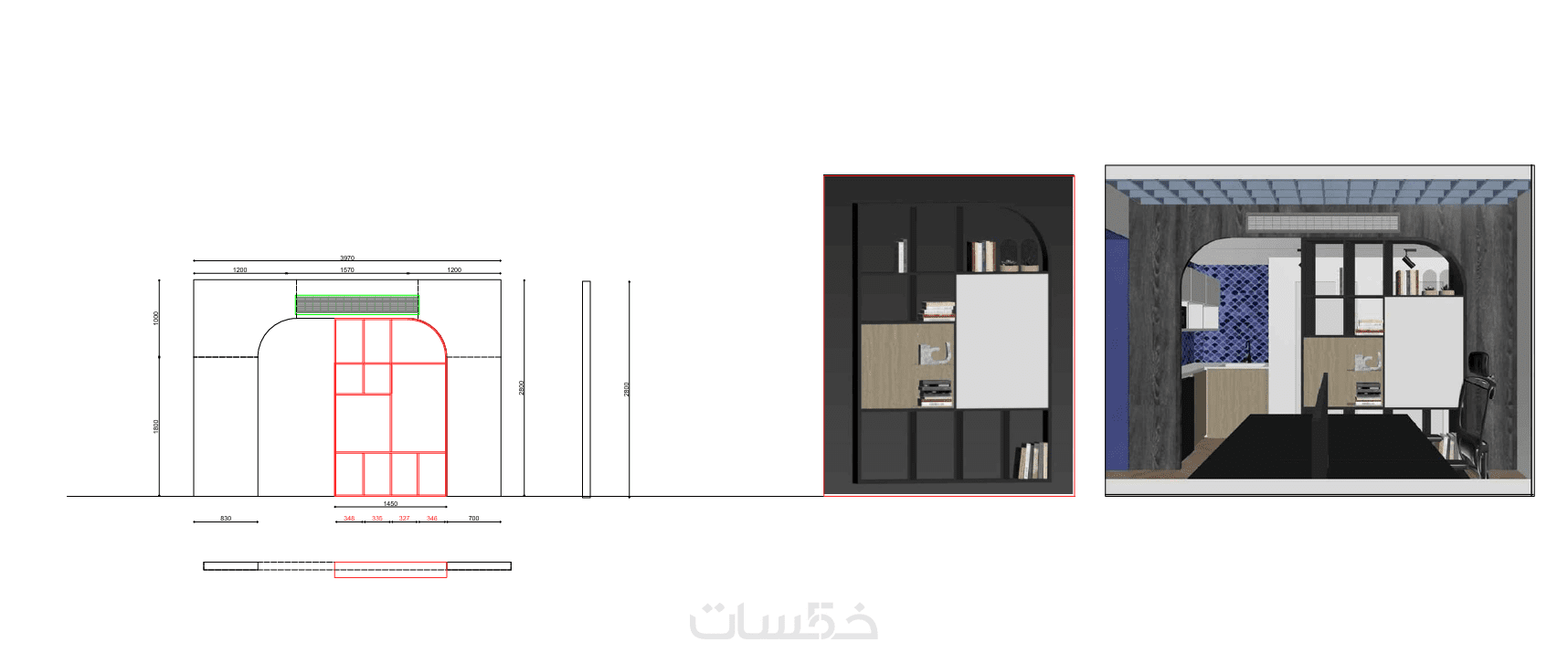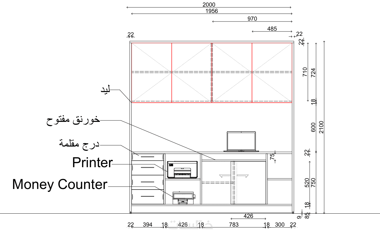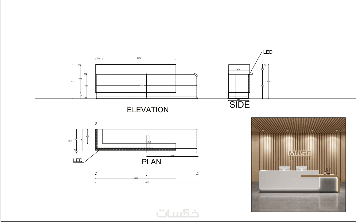 رسومات تنفيذية لكل قطعة أثاث بالمقاسات و كافة التفاصيل المناسبة للمساحة المطلوبة للتنفيذ.