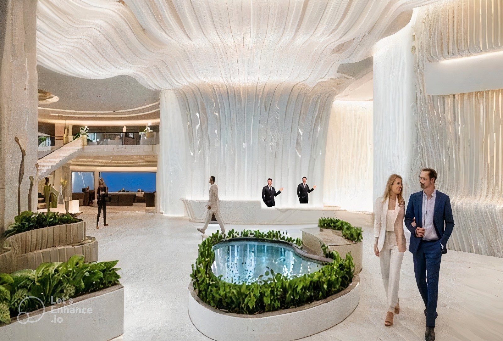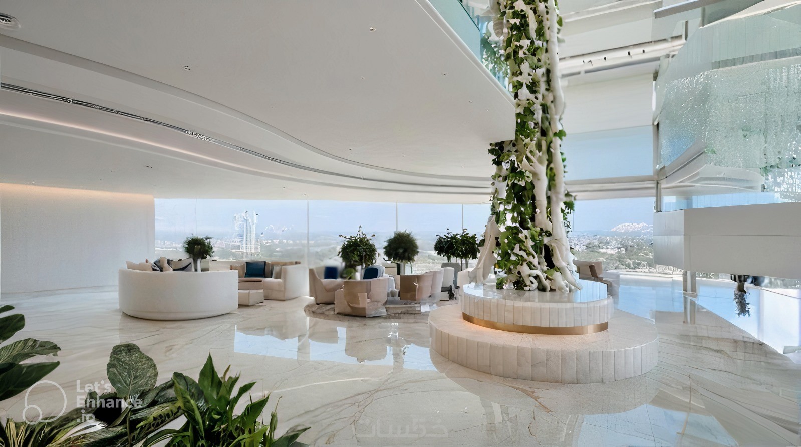 صورة تصميم داخلي ثلاثي الأبعاد (3D Render) واقعية وعالية الجودة