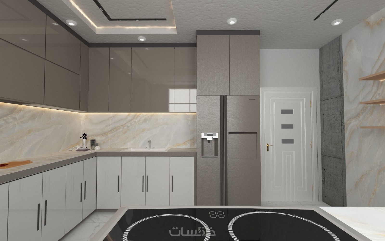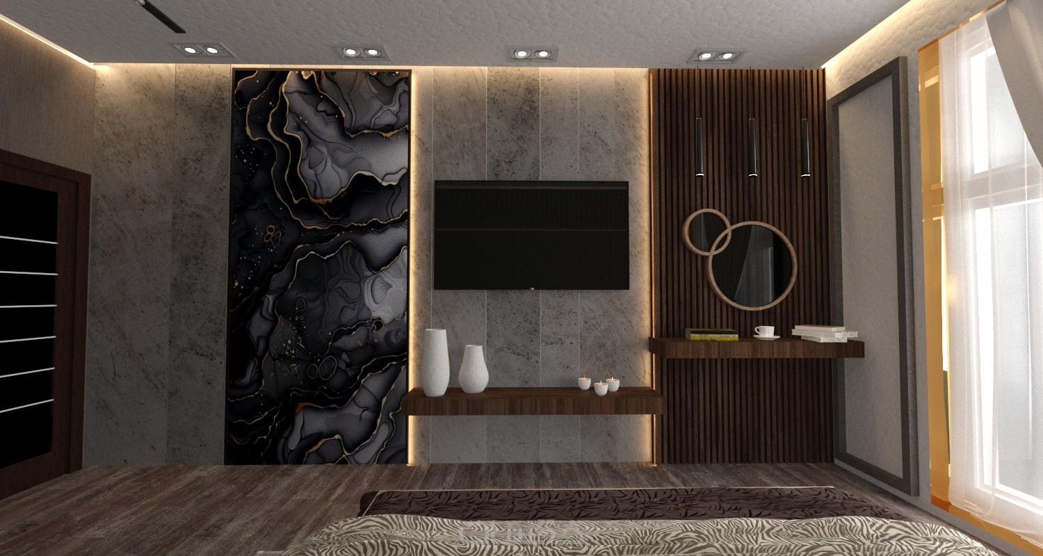 1-صور ثلاثية البعد للتصميم بصيغة ملف pdf عدد2 لكل فراغ توضح كافة التفاصيل فية