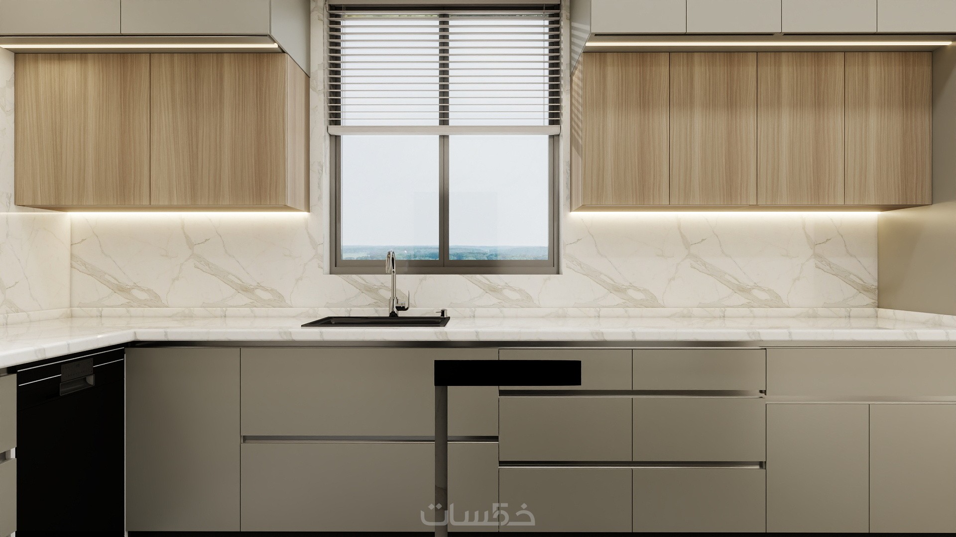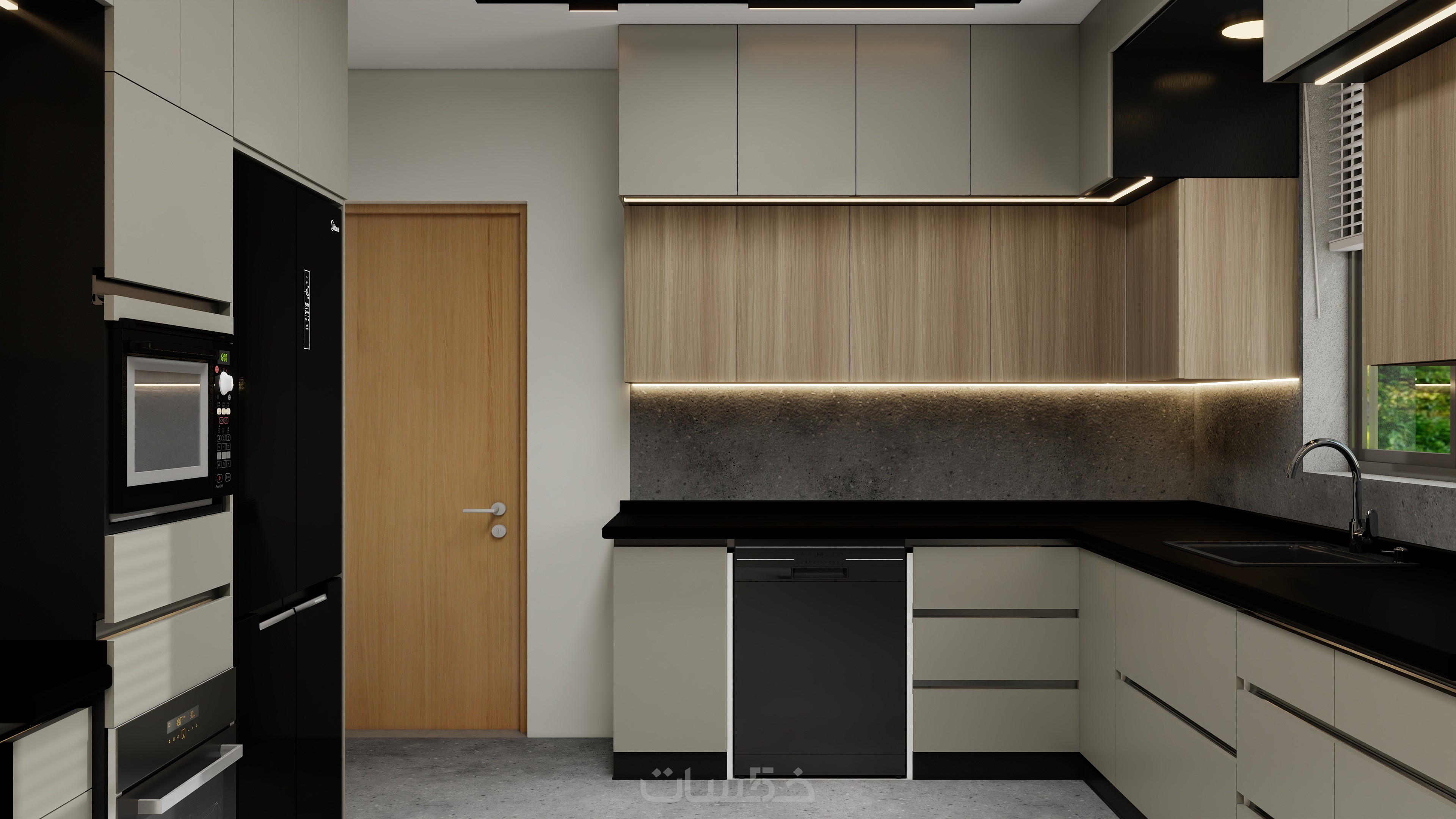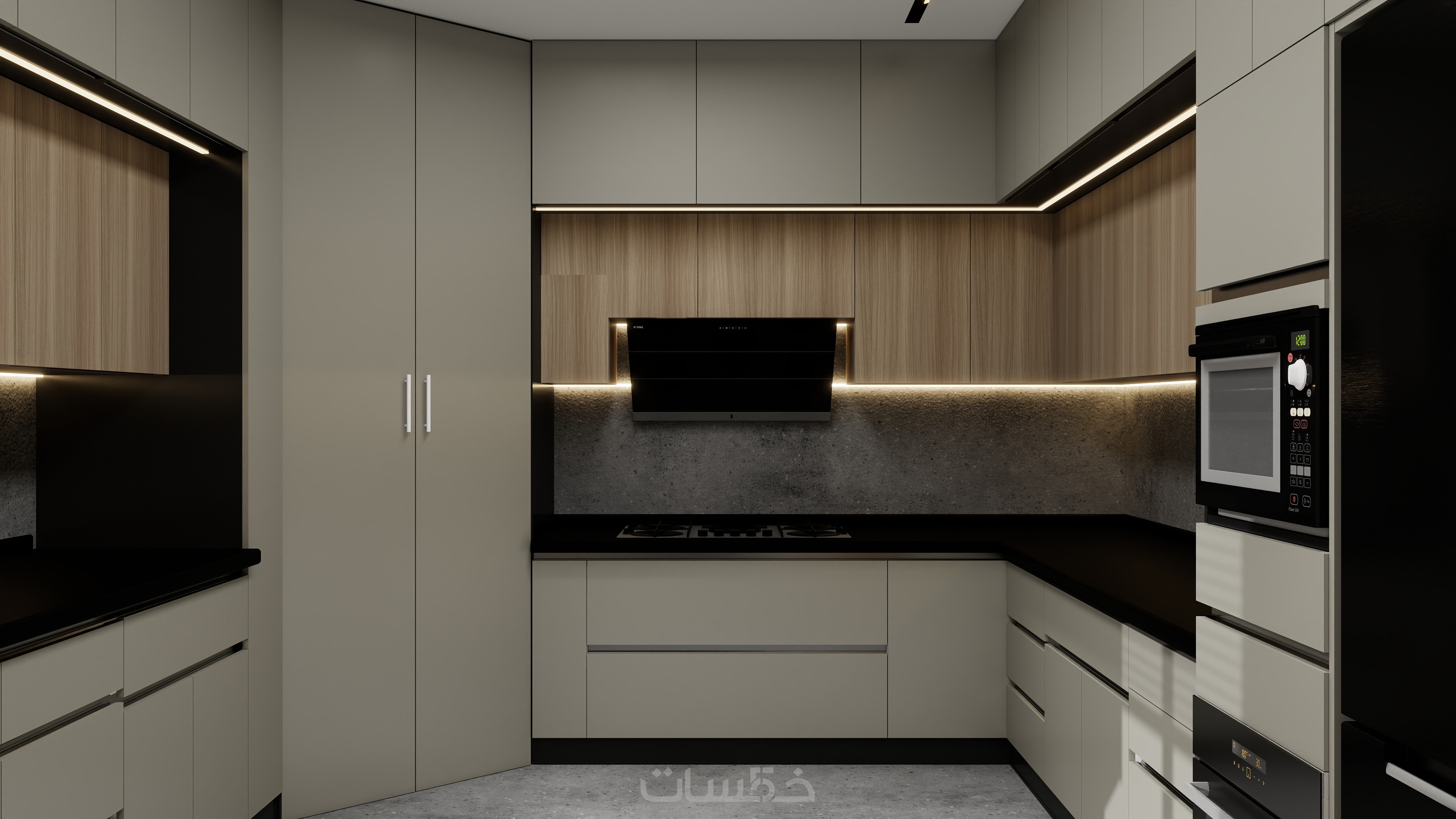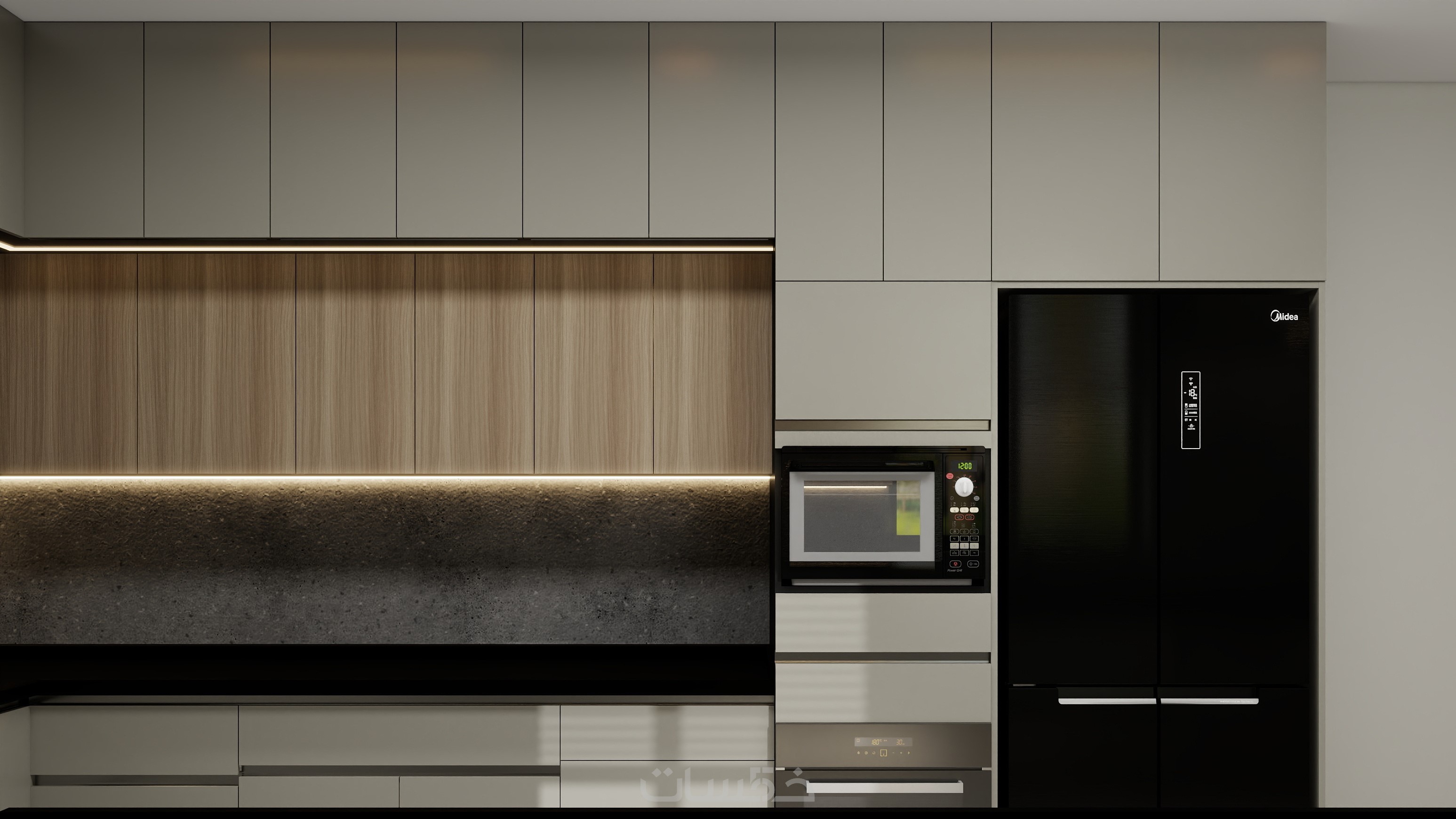 تصميم مطبخ باستايل مودرن بالاضافة للمقاسات التنفيذية بمساحة ابتدائية 5 متر مربع و 3 تعديلات بكشل مجاني