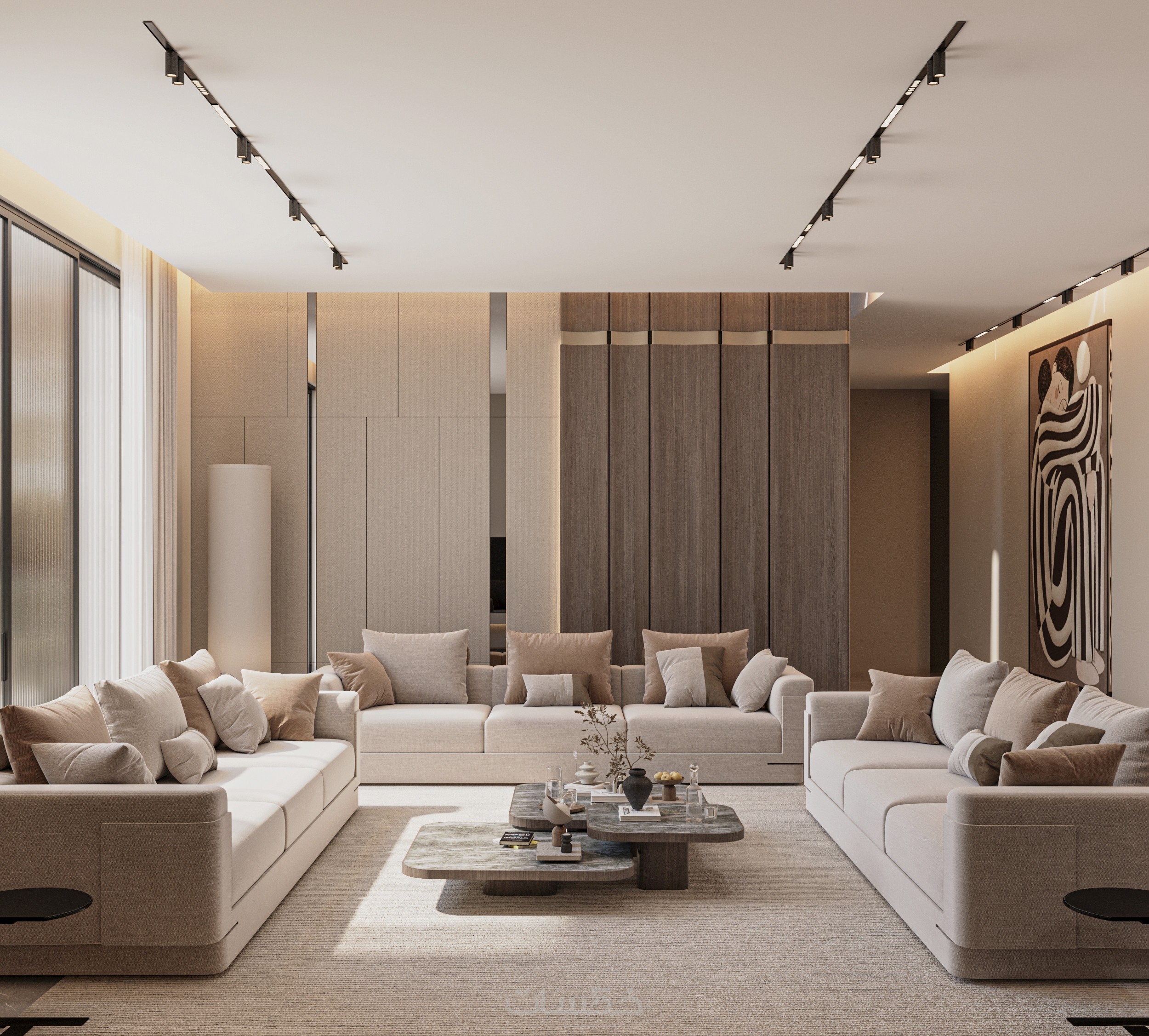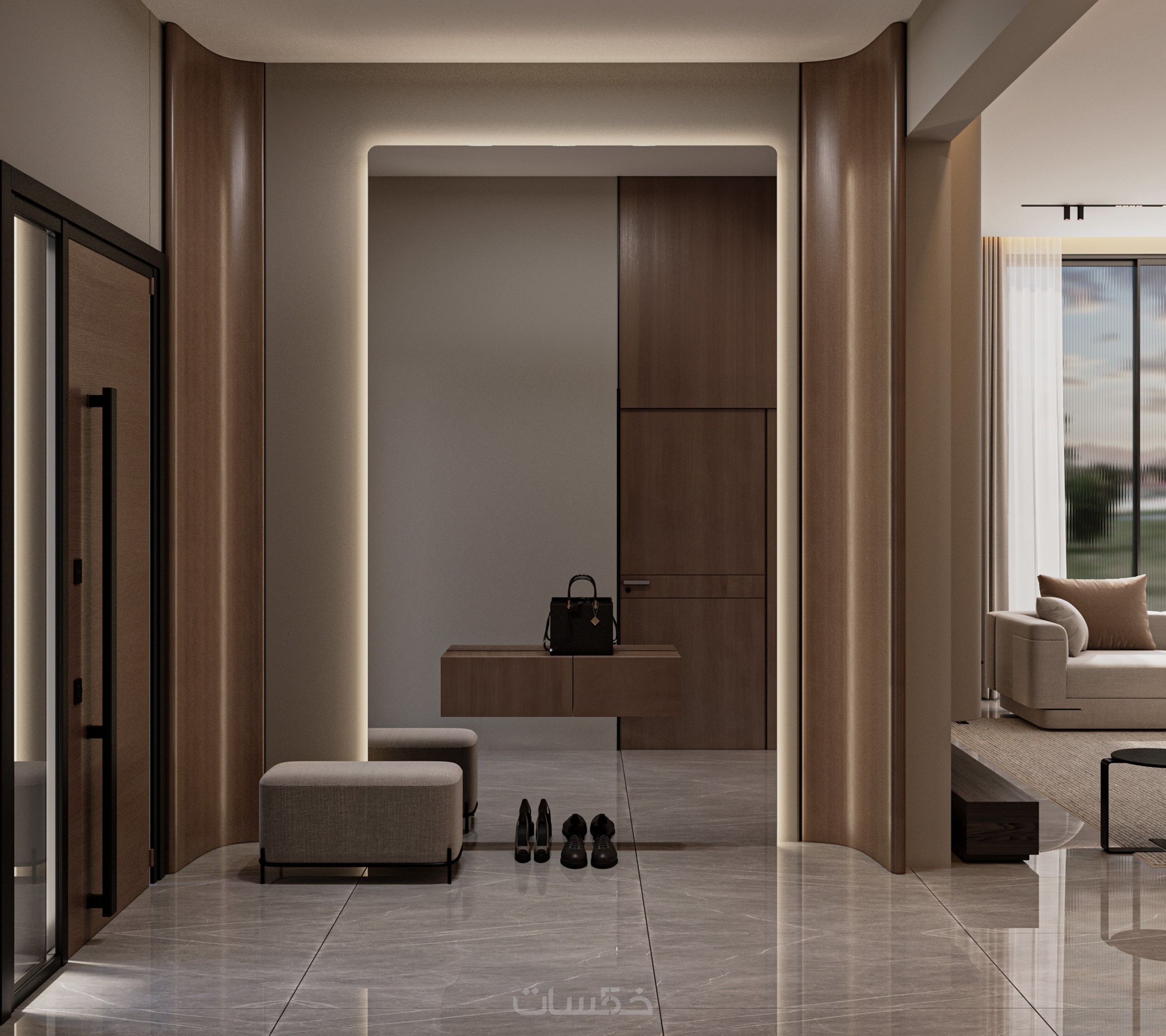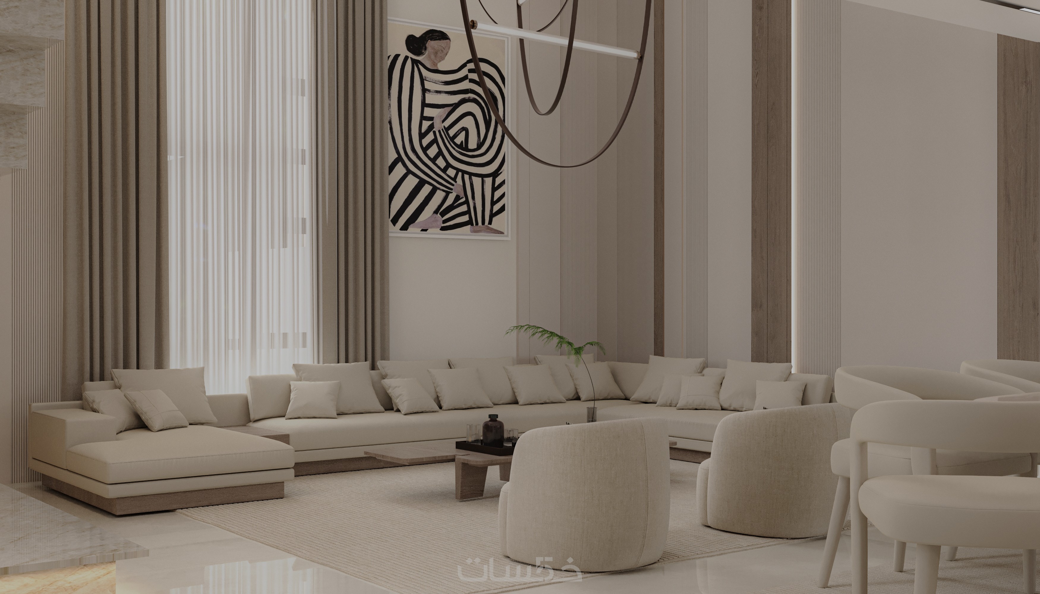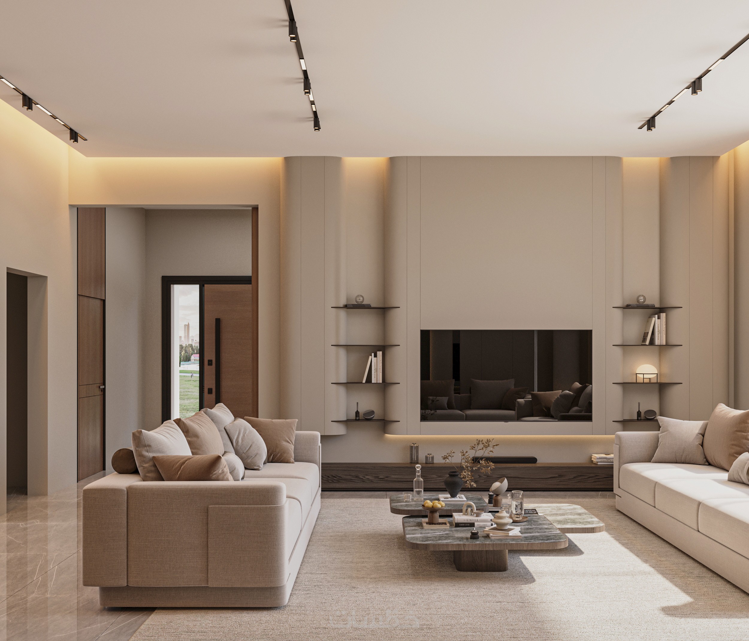 تصميم داخلي ثلاثي الأبعاد (3D) واقعي لكامل المساحة