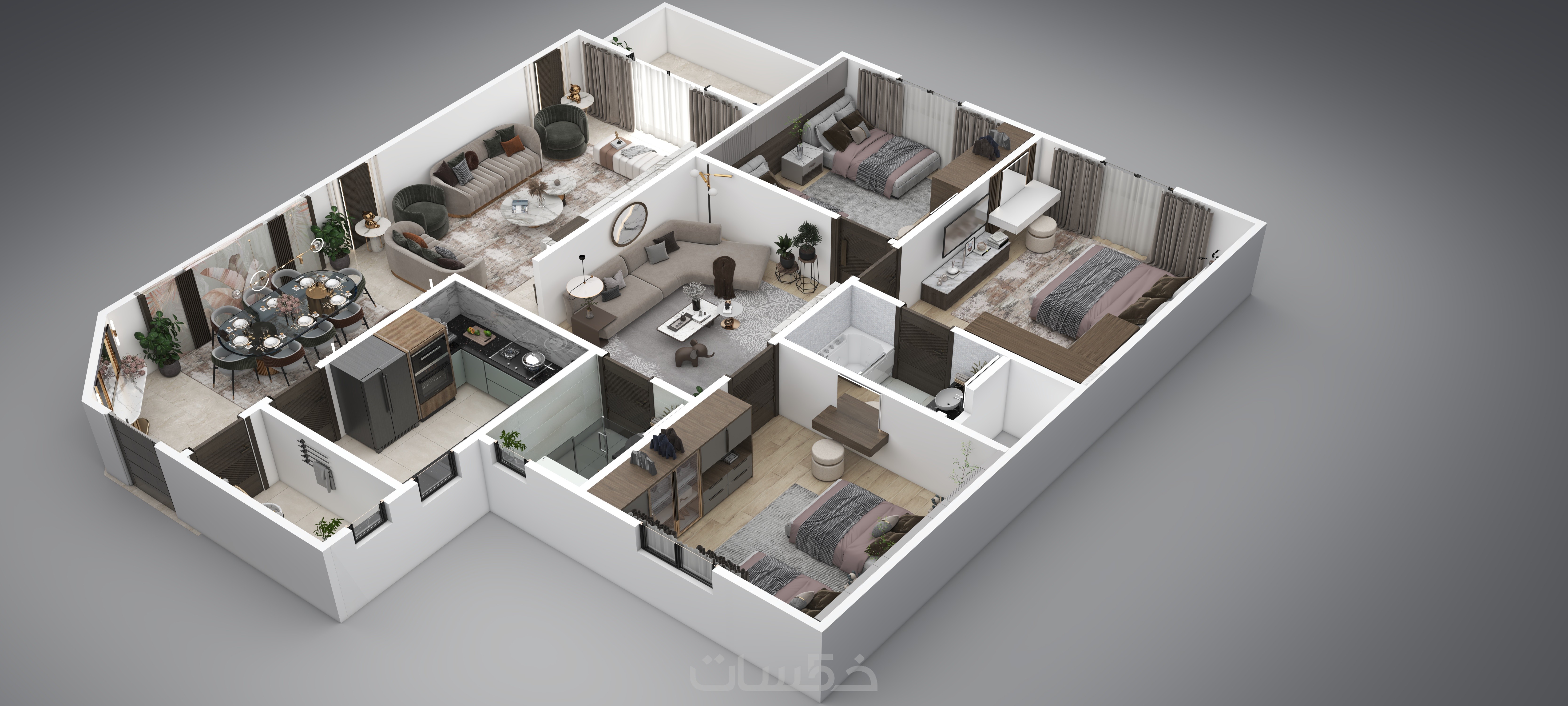 بلان ثلاثى الابعاد بالفرش لكل 3م
