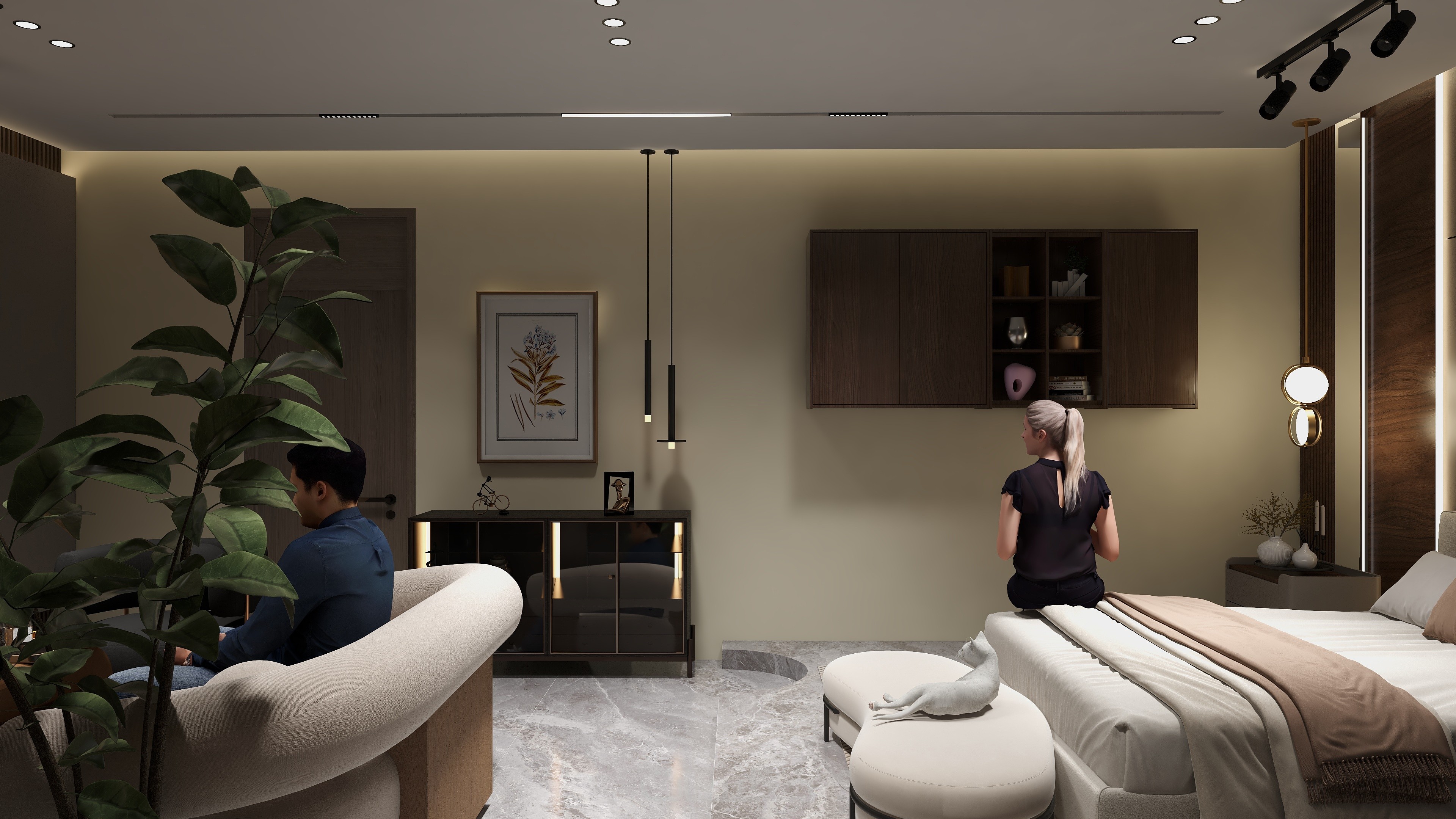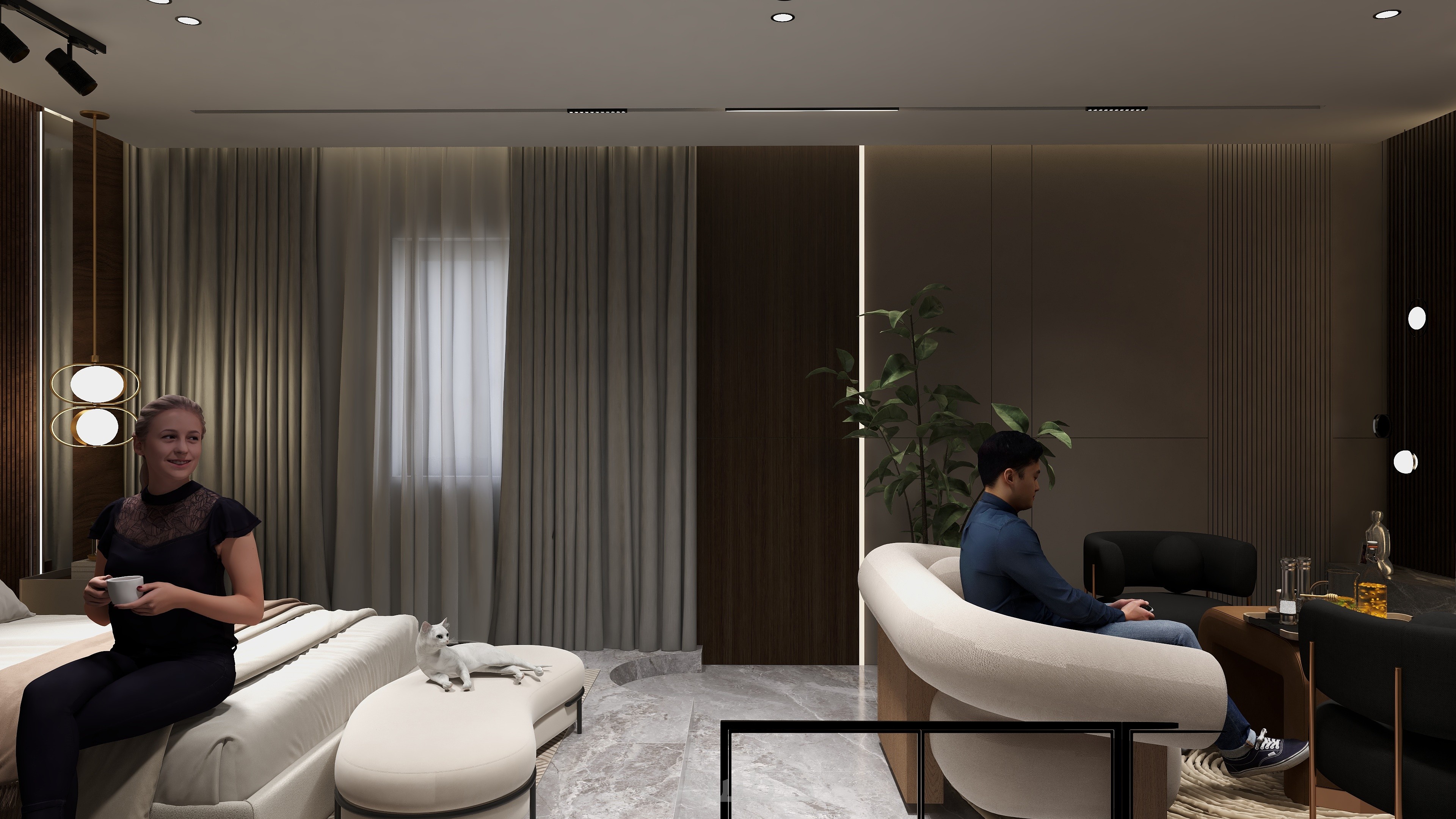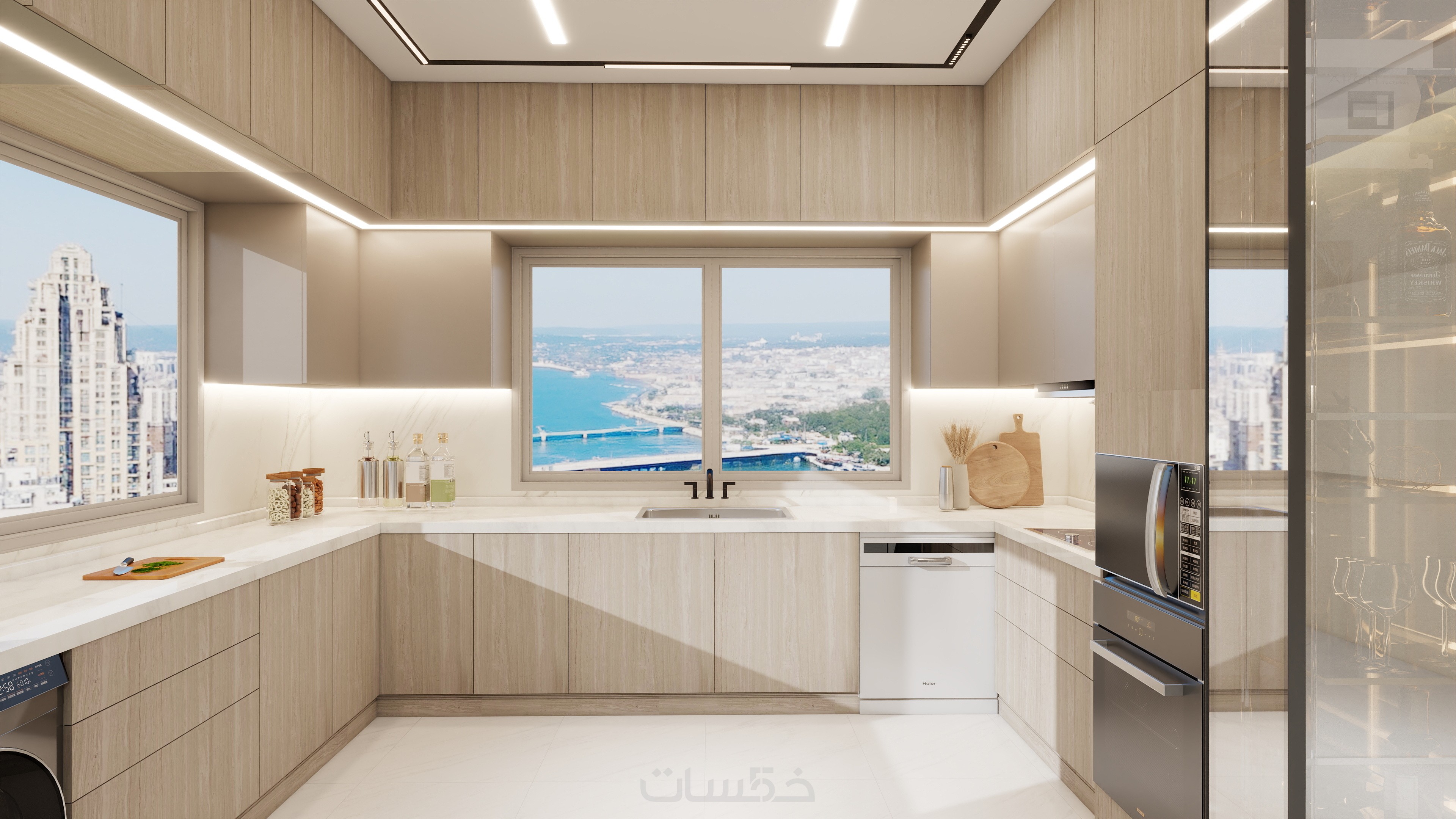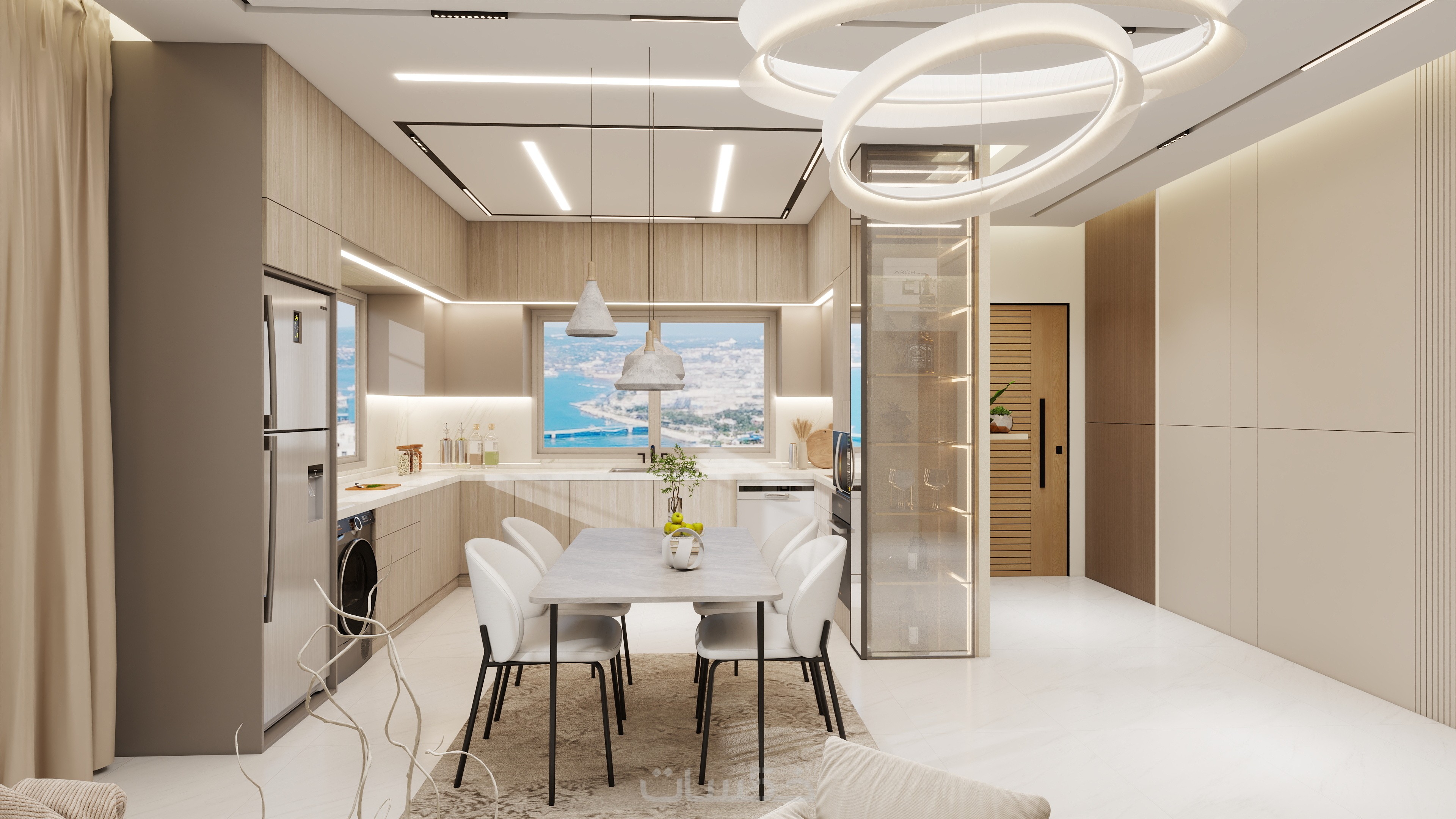 -> تصميم لكل الفراغات (غرف النوم - المجالس - المطابخ -غرف المعيشة -الحمامات - المطابخ وكل المساحات الداخلية )