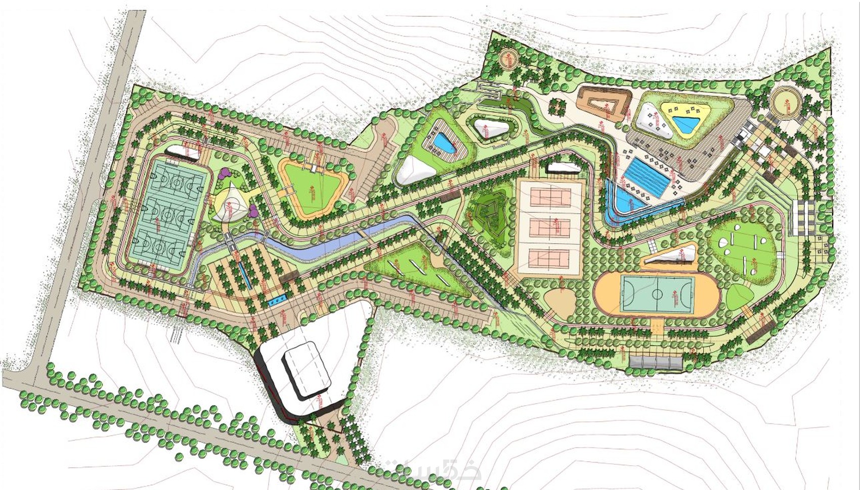 -تصميم المسطحات المائية ( حمامات سباحة، النوافير ، برك الماء ) .