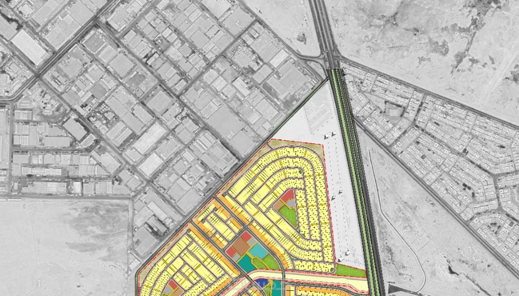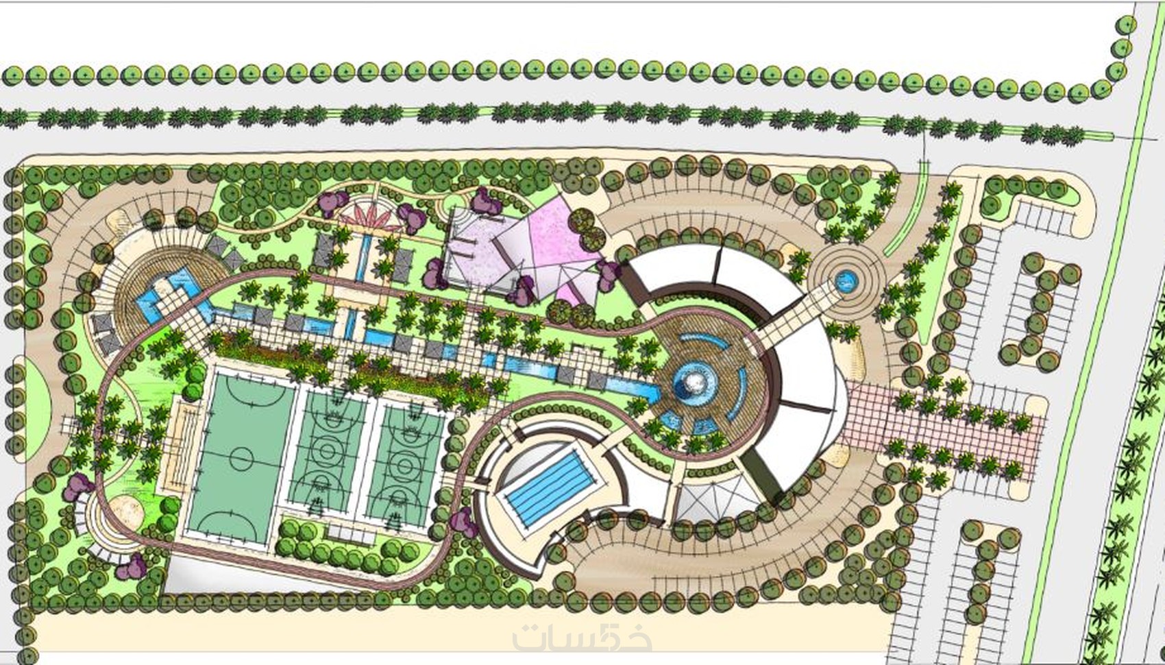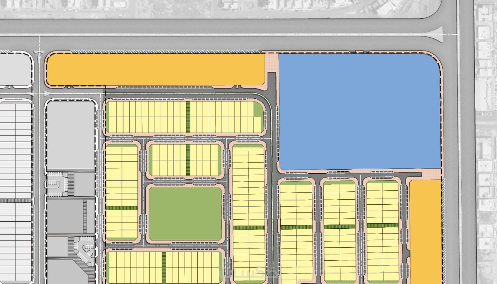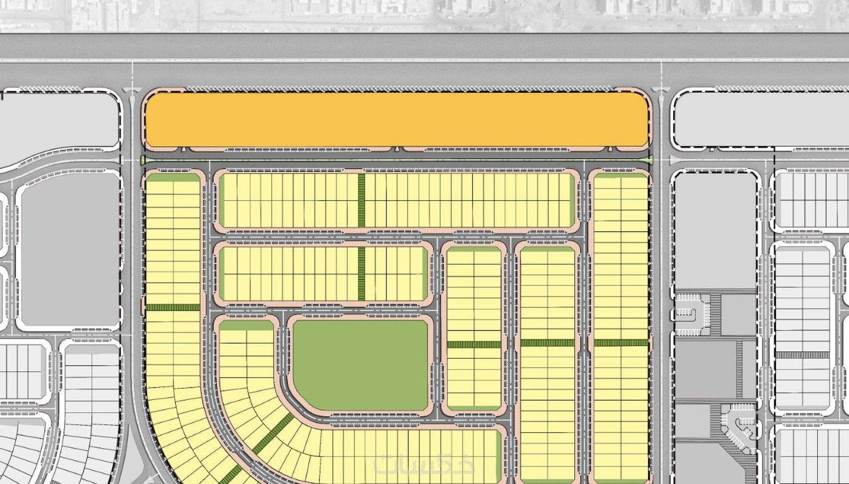 مخططات تنفيذية لعناصر فرش الموقع للمشاريع الكبيرة (أكبر من 100,000 متر مربع)