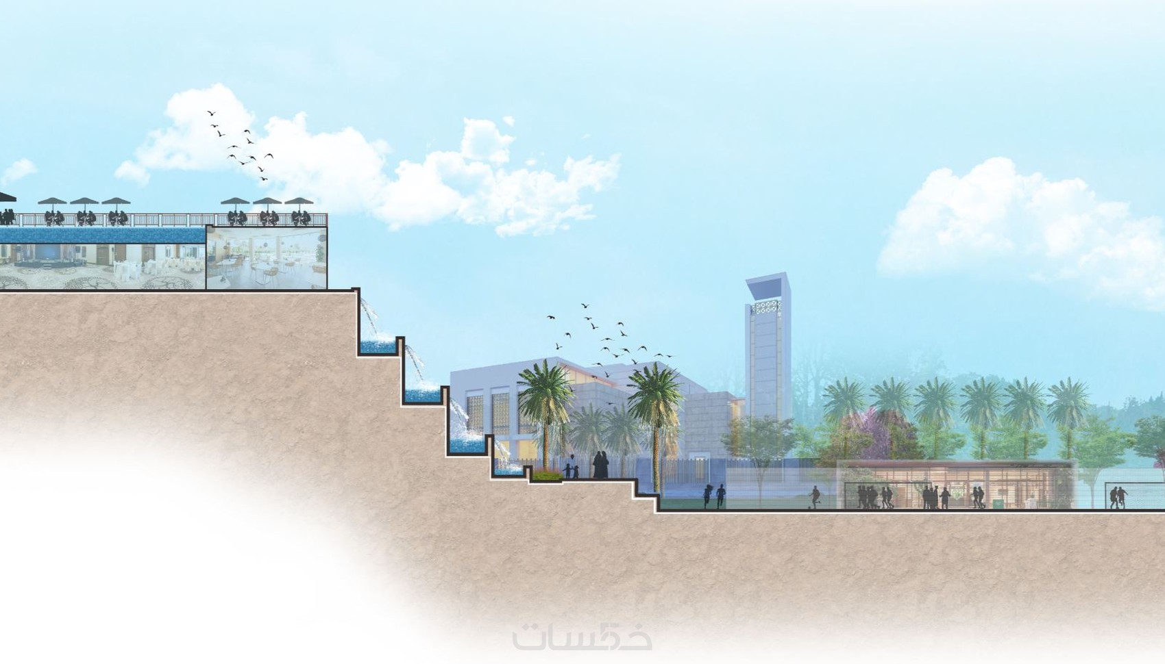 مخططات تفصيلية للعناصر المستخدمة من أرضيات وعناصر مائية