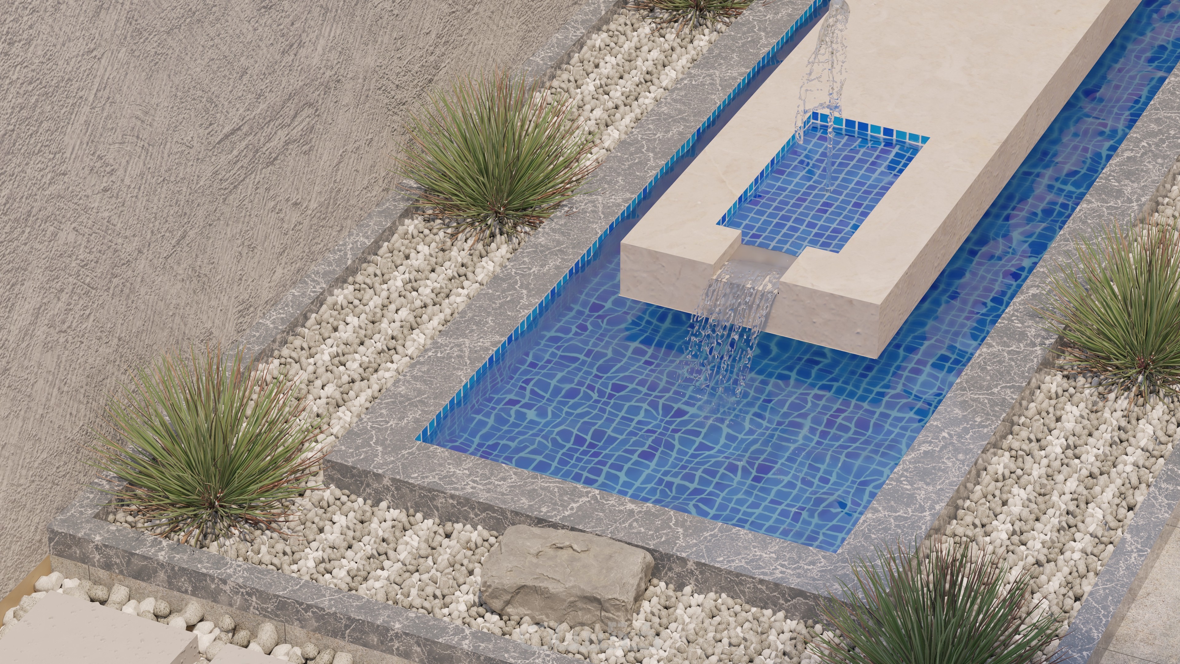 -توزيع و تقسيم المسطحات المائية ( المسابح ، النوافير)
