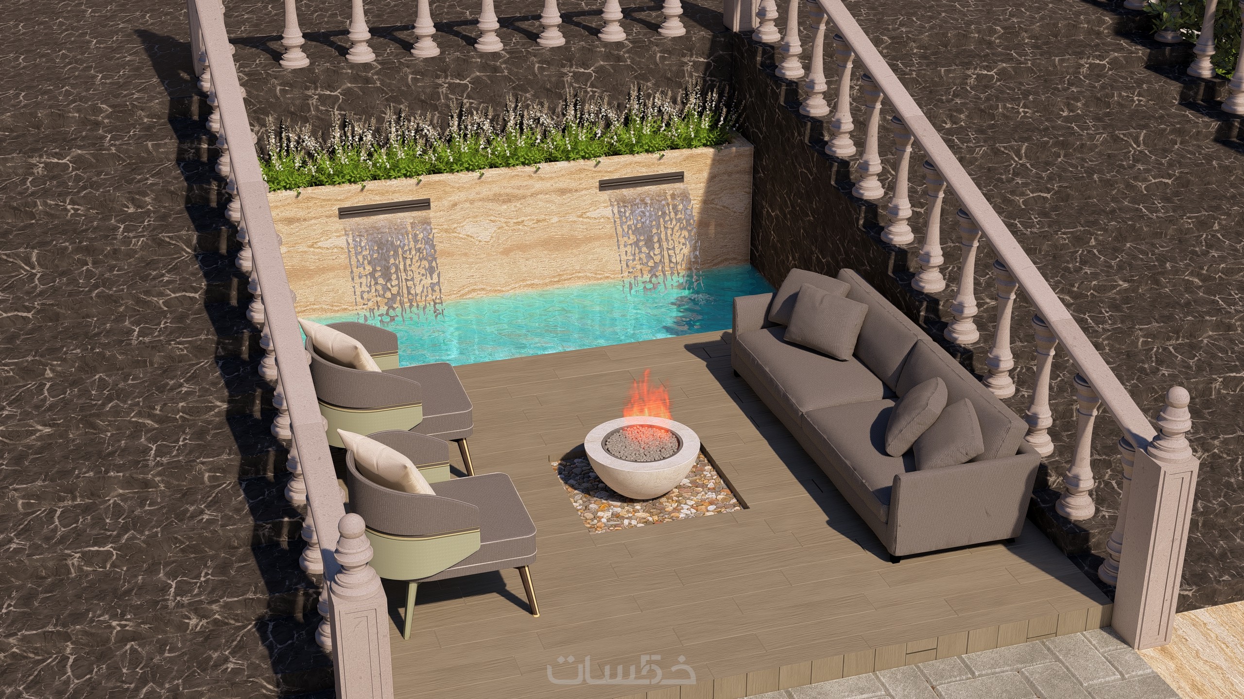 -تصميم الجلسات الخارجية المطلة على الحديقة سواء فيلا أو روف
