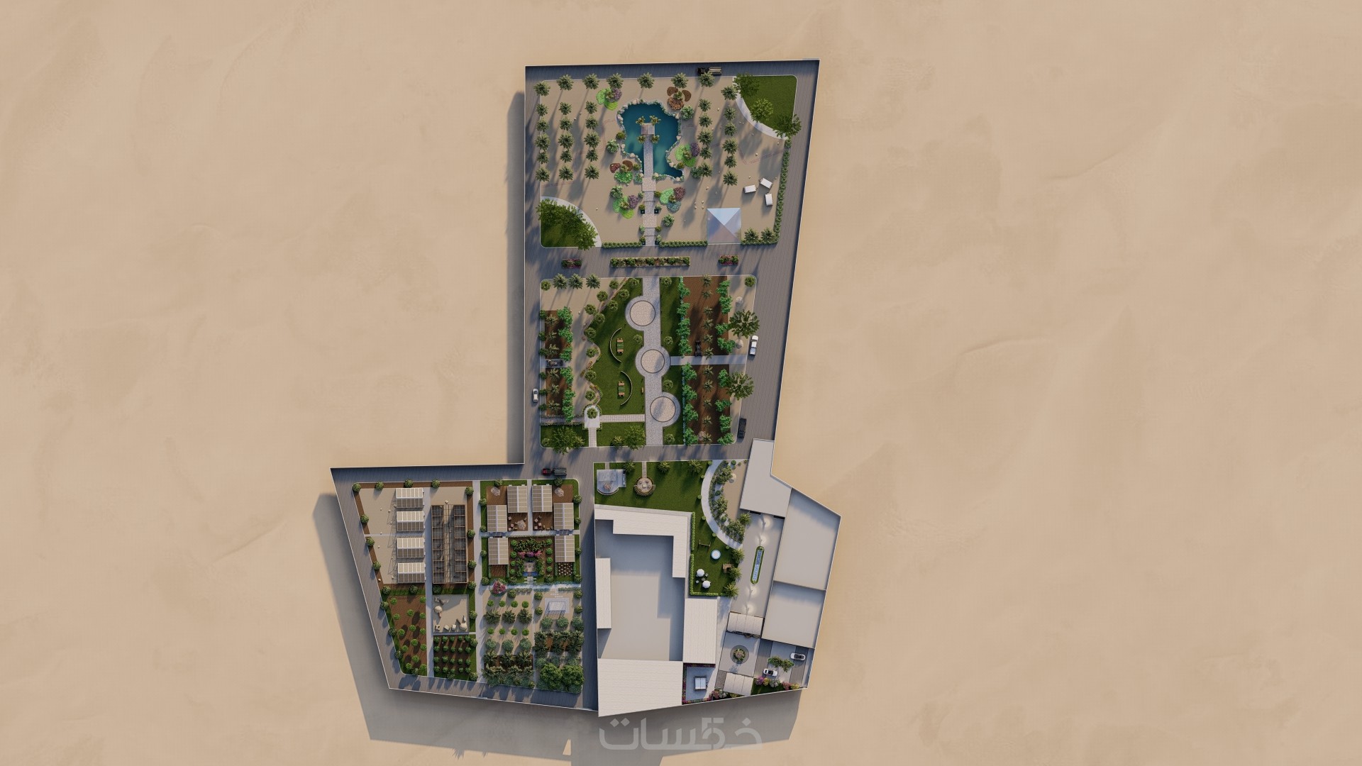 تخطيط و توزيع للمناطق ضمن المرزعة مع اختيار المحاصيل المناسبة حسب الموقع و المشروع