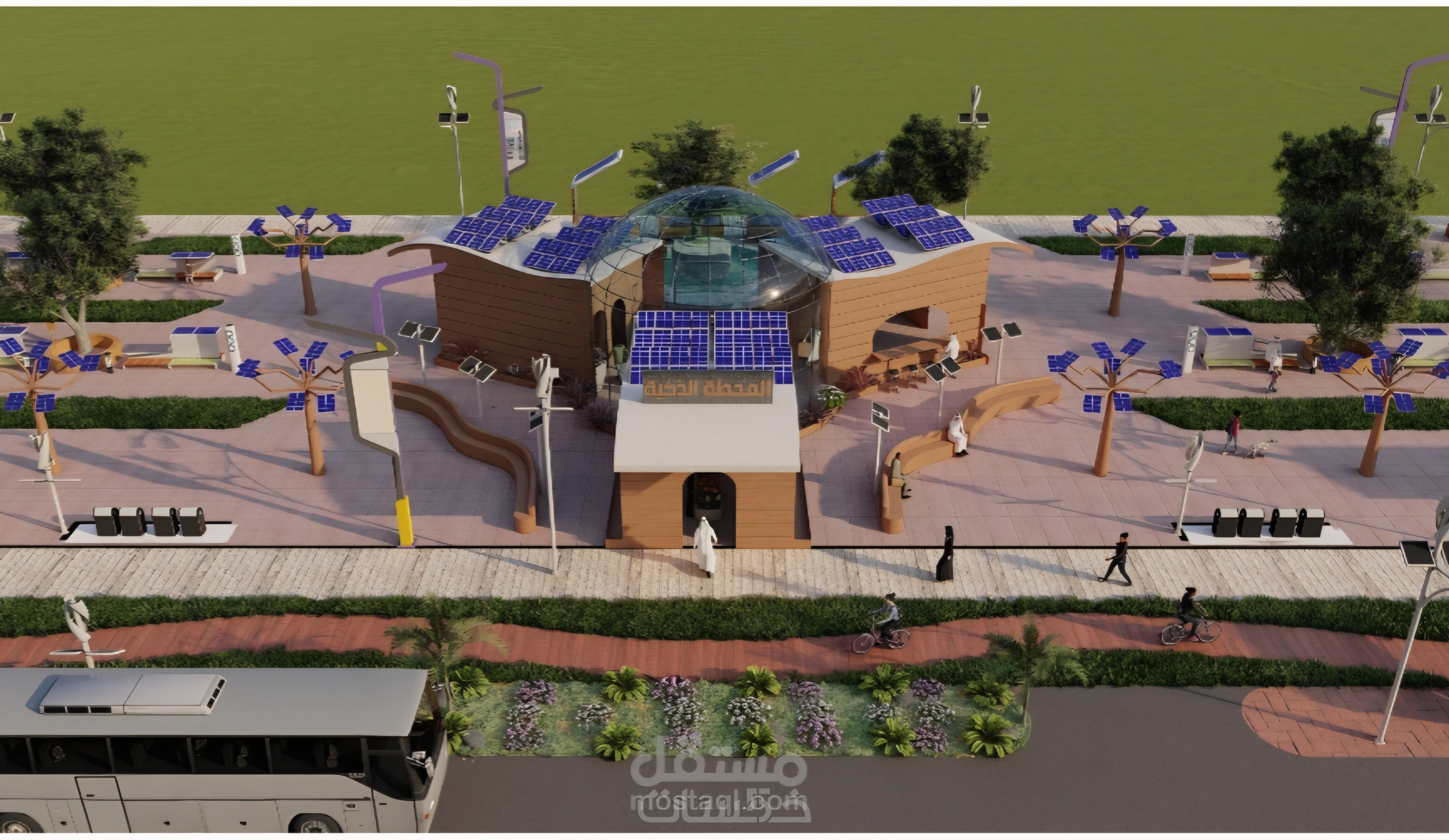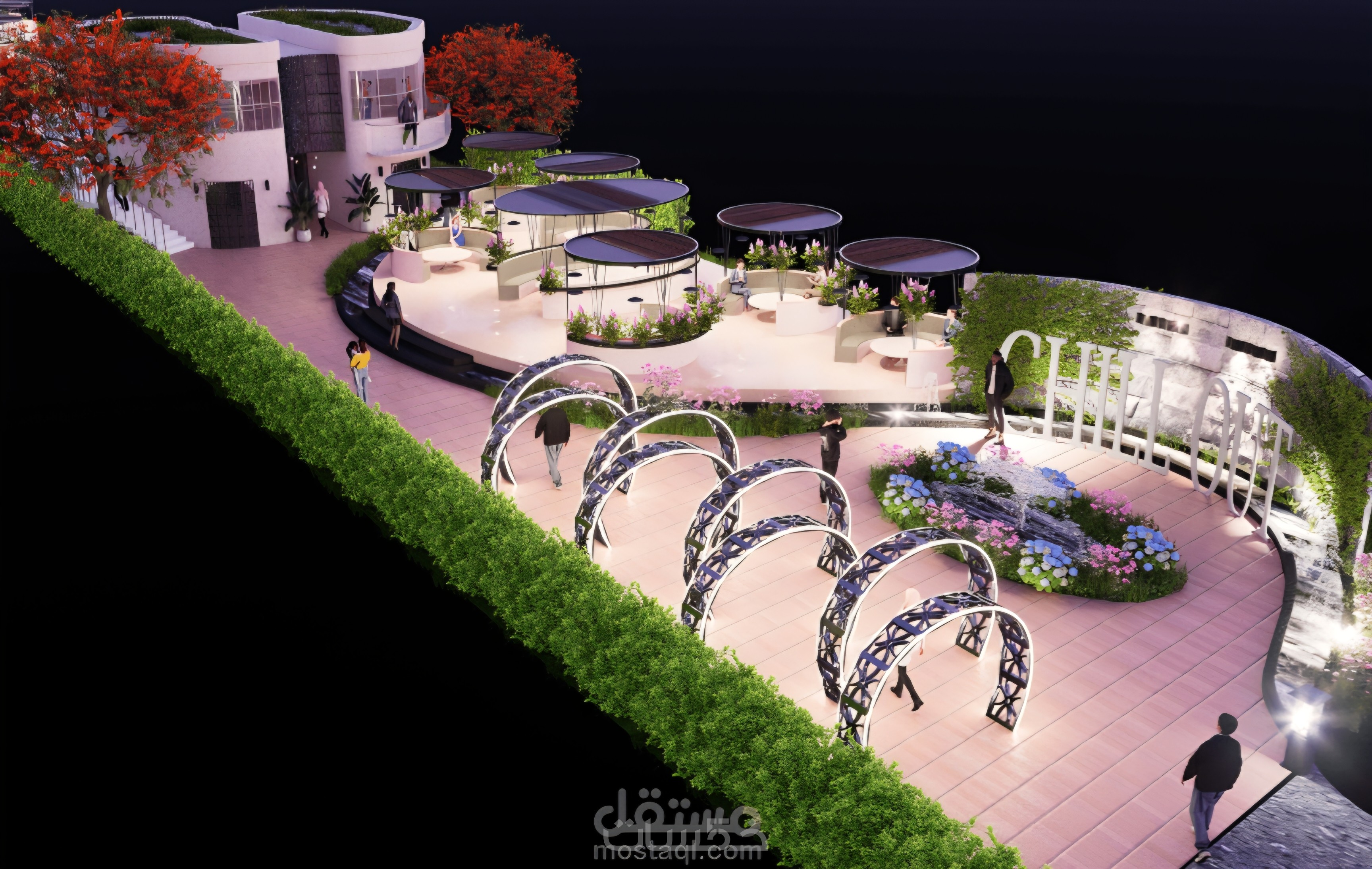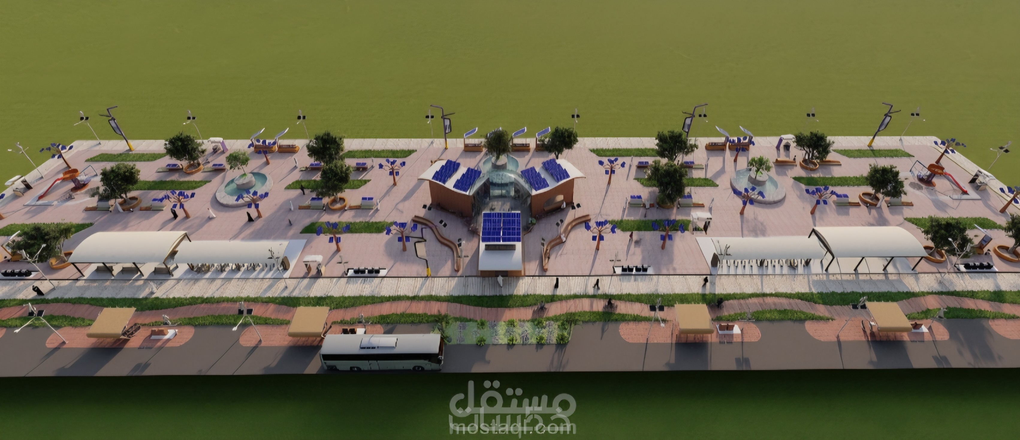 تصميم 3d متكامل للمشروع ولقطات نهارية وليلية لتوضيح جوانب المشروع المختلفة
