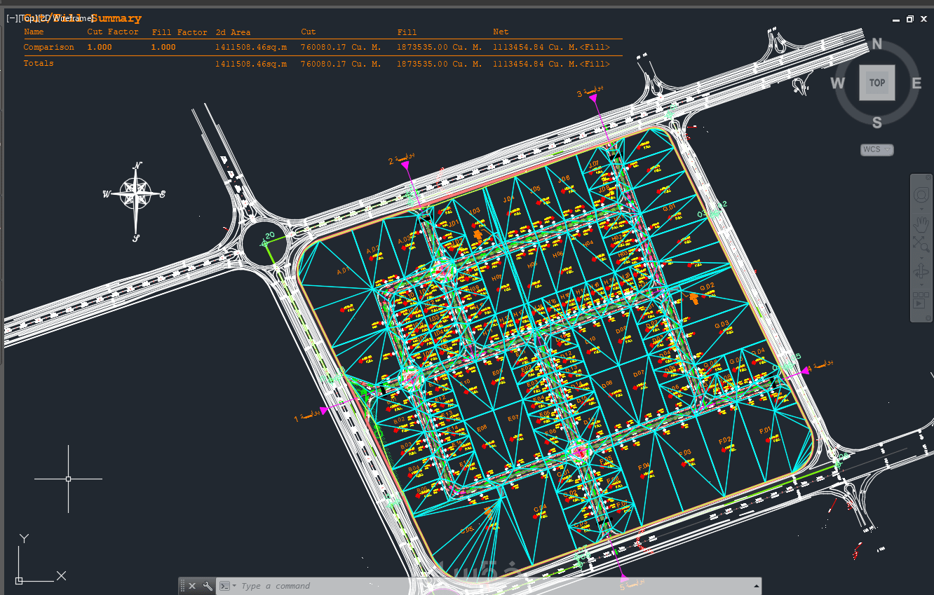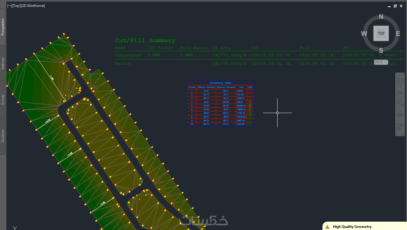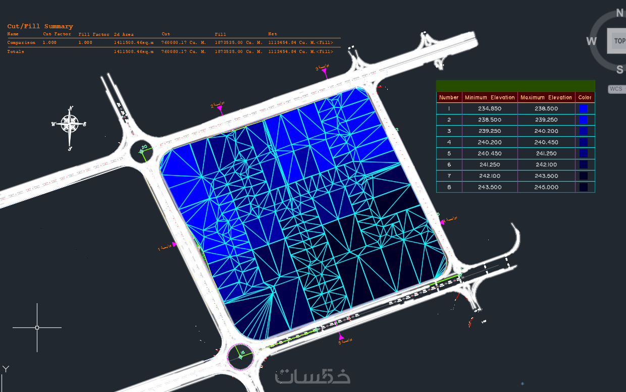 ملف يحتوي على تصميم مناسيب الارض وارتفاعات الاراضي لمساحة لا تتعدى ال 20 الف متر مربع