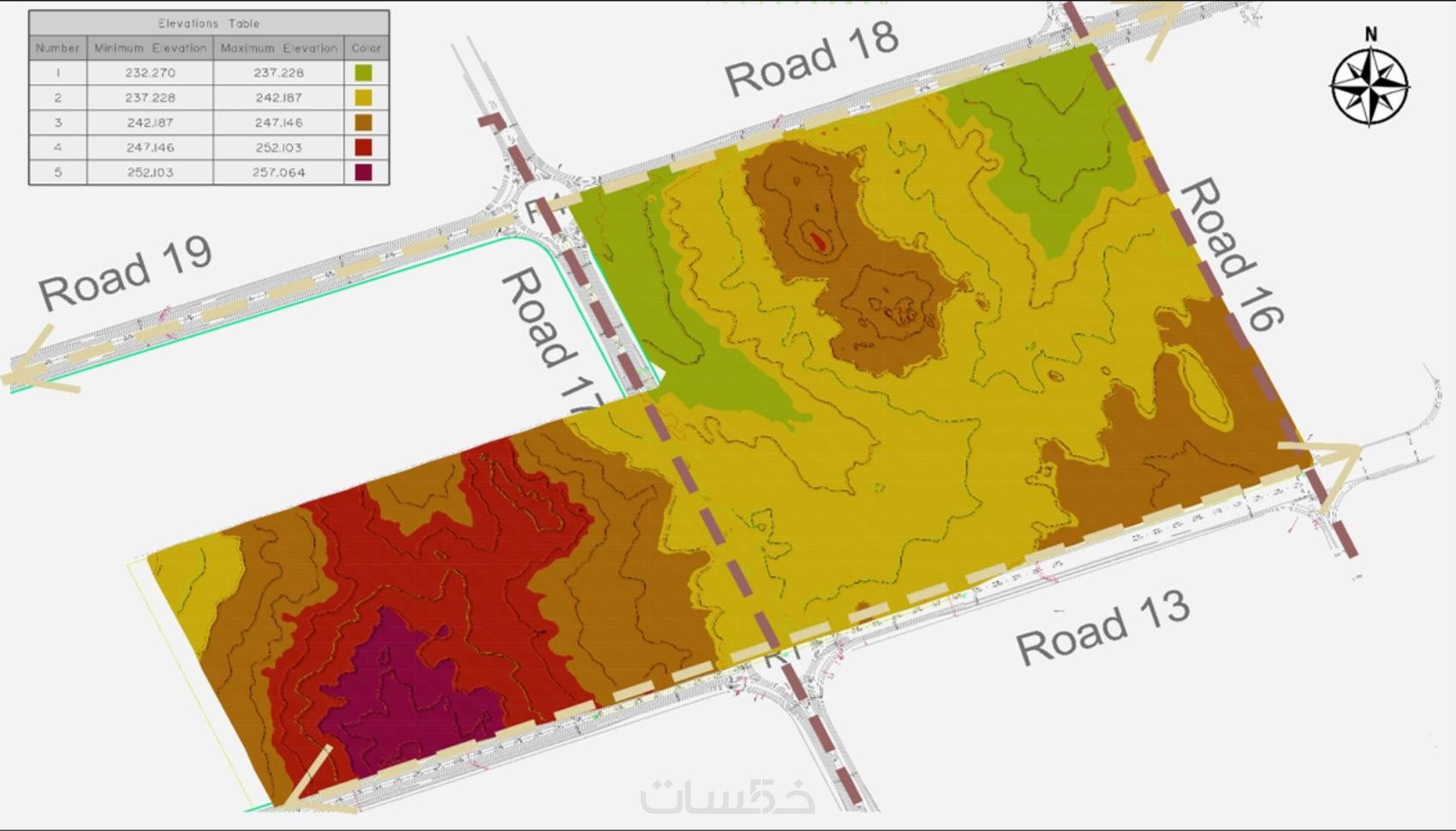 إظهار وتلوين لمناسيب الارض في المشروع لسهولة قراءة الارتفاعات