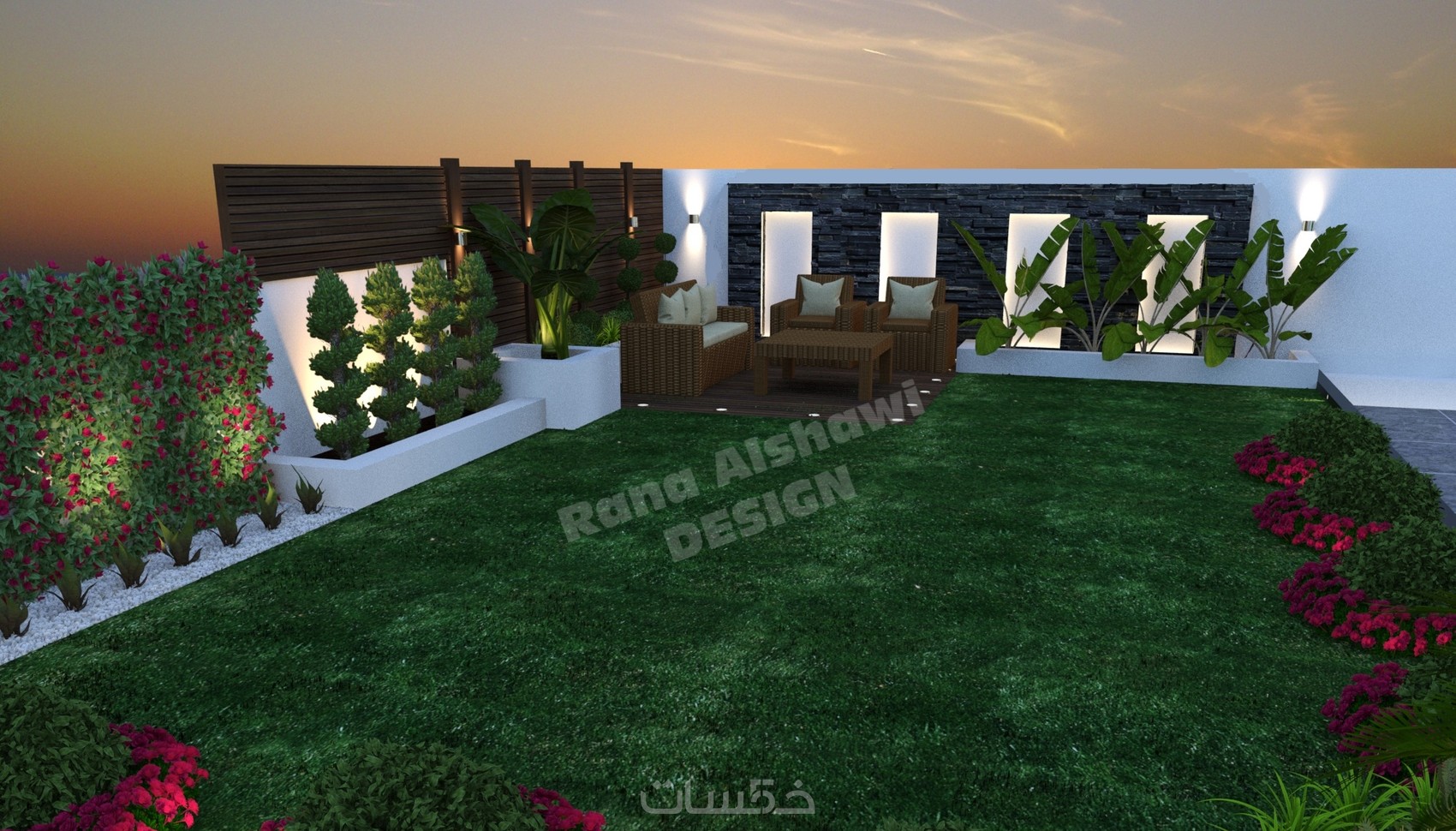 مبدعه في التصميم وسرعه في إتقان العمل ومحترفه في التعديلات لم أتوقع ان تصمم لي حديقه ومنزل بتصميم عصري حديث مميز غير مكرر تهتم في جميع التفاصيل بتنسيق جذاب متناسق كانت افضل صفقه السعر مقابل افضل تصميم حصلت عليه أنا جدا أشكرك مهندسة رنا على رحابة صدرك في التعديلات وعلى التصميم المميز نشالله سنتعامل مره اخرى