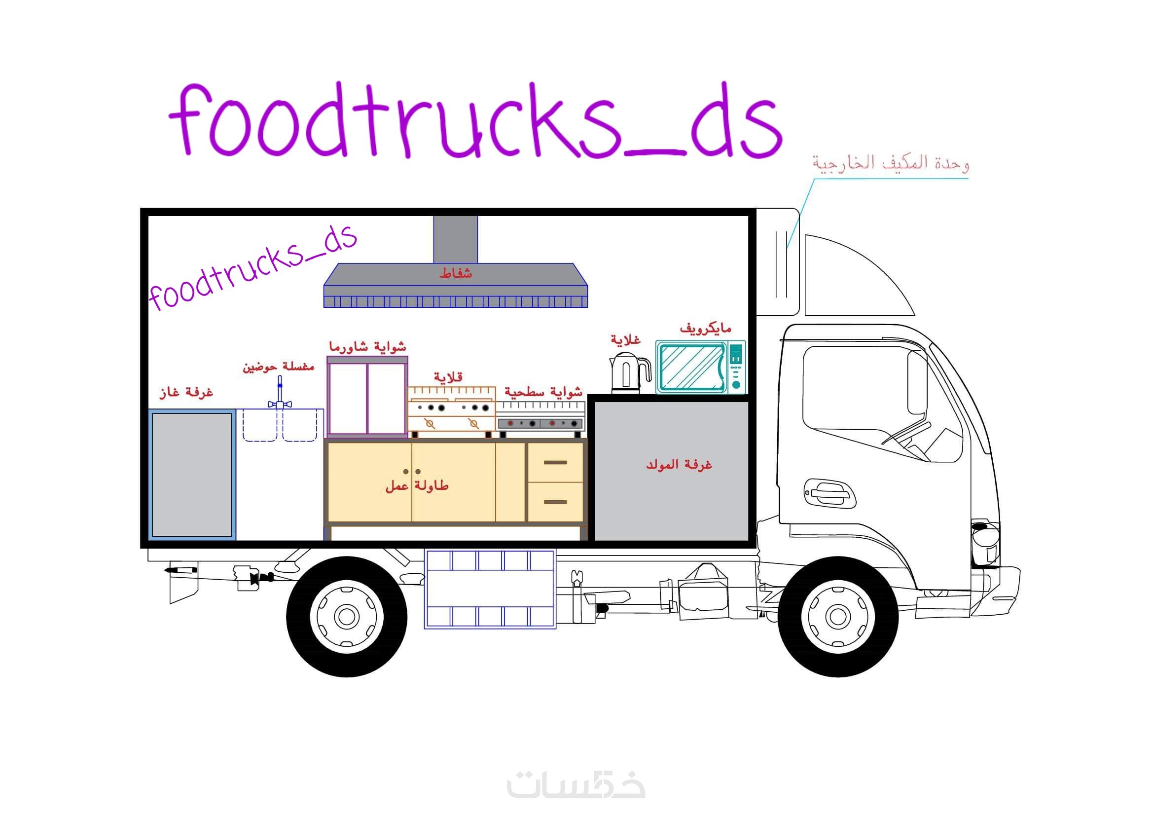 اقوم في هذه الخدمة بتصميم مخطط هندسي كروكي ثنائي الأبعاد للعربات المتنقلة (Food truck) ببرنامج اوتوكاد لزوم استخراج التراخيص