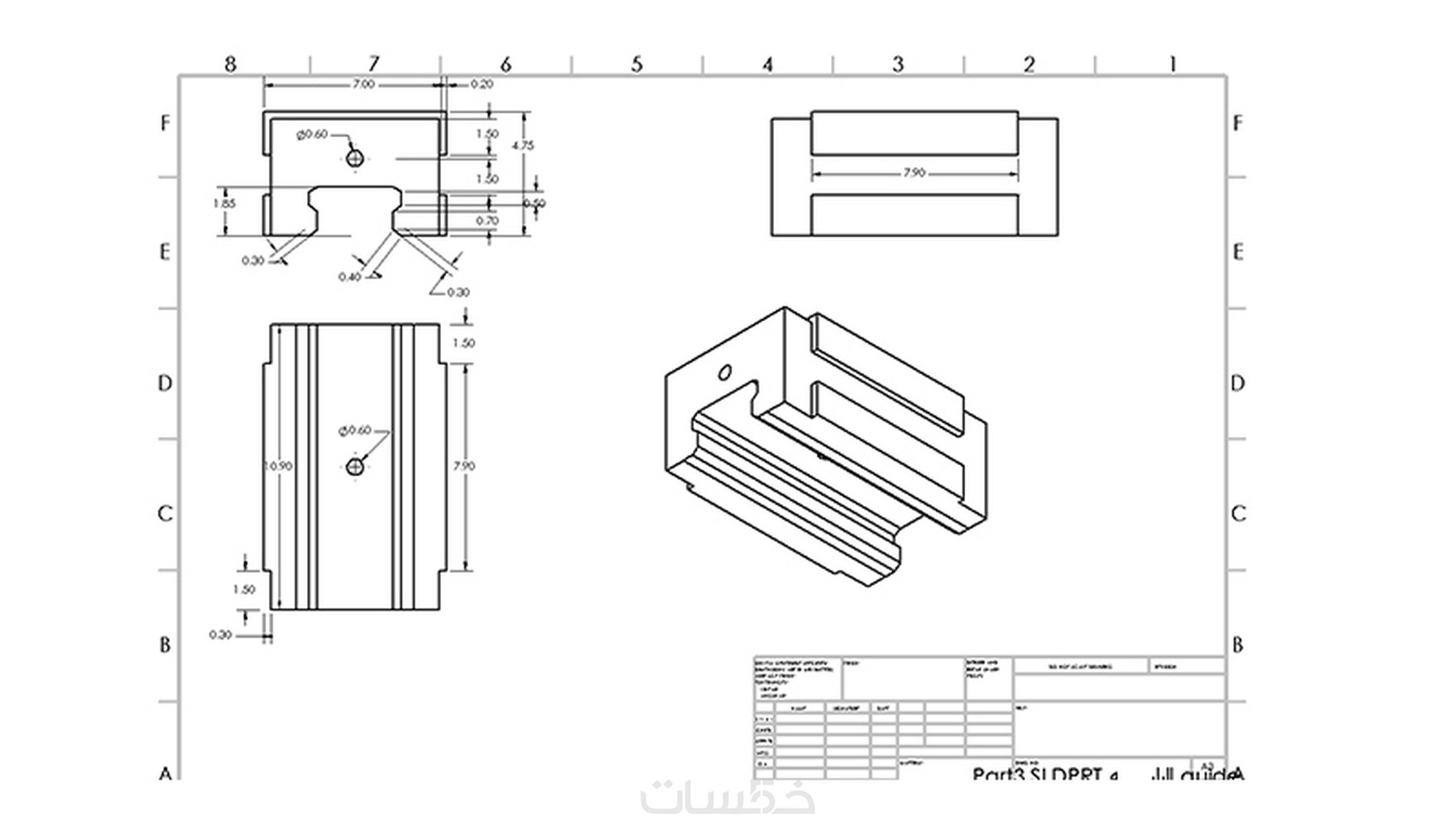 *التصميم يتم إرفاقة بملف الجزء الثلاثي الأبعاد مع ملف المساقط الثلاثة للجزء.