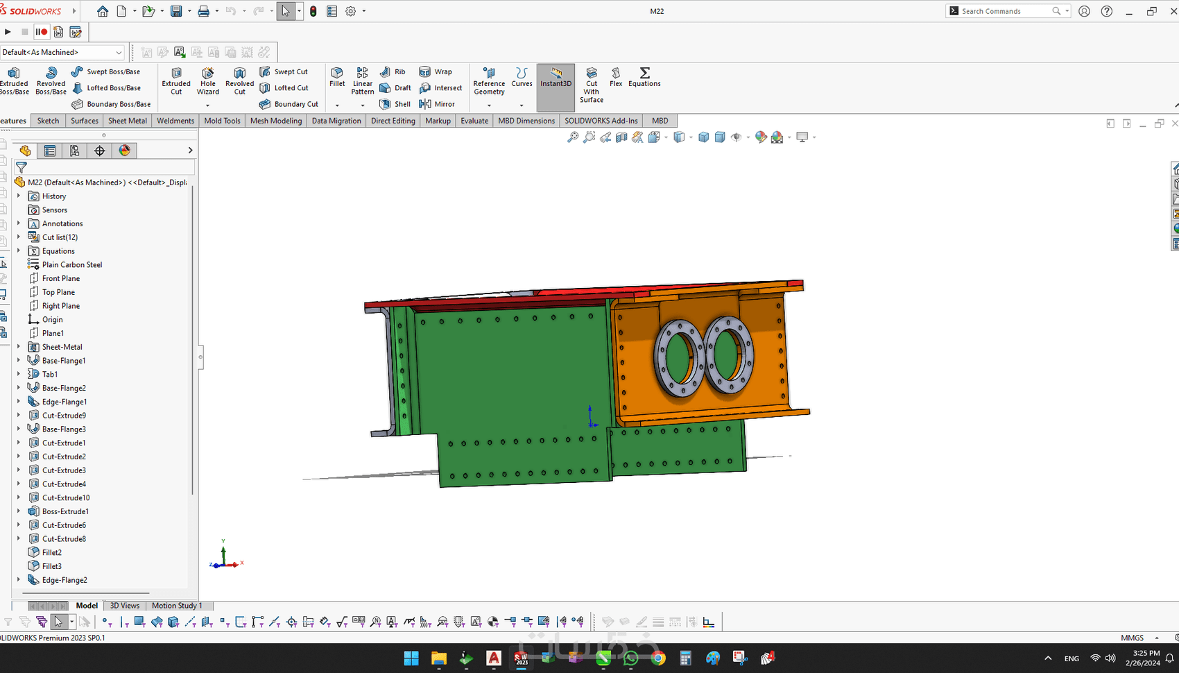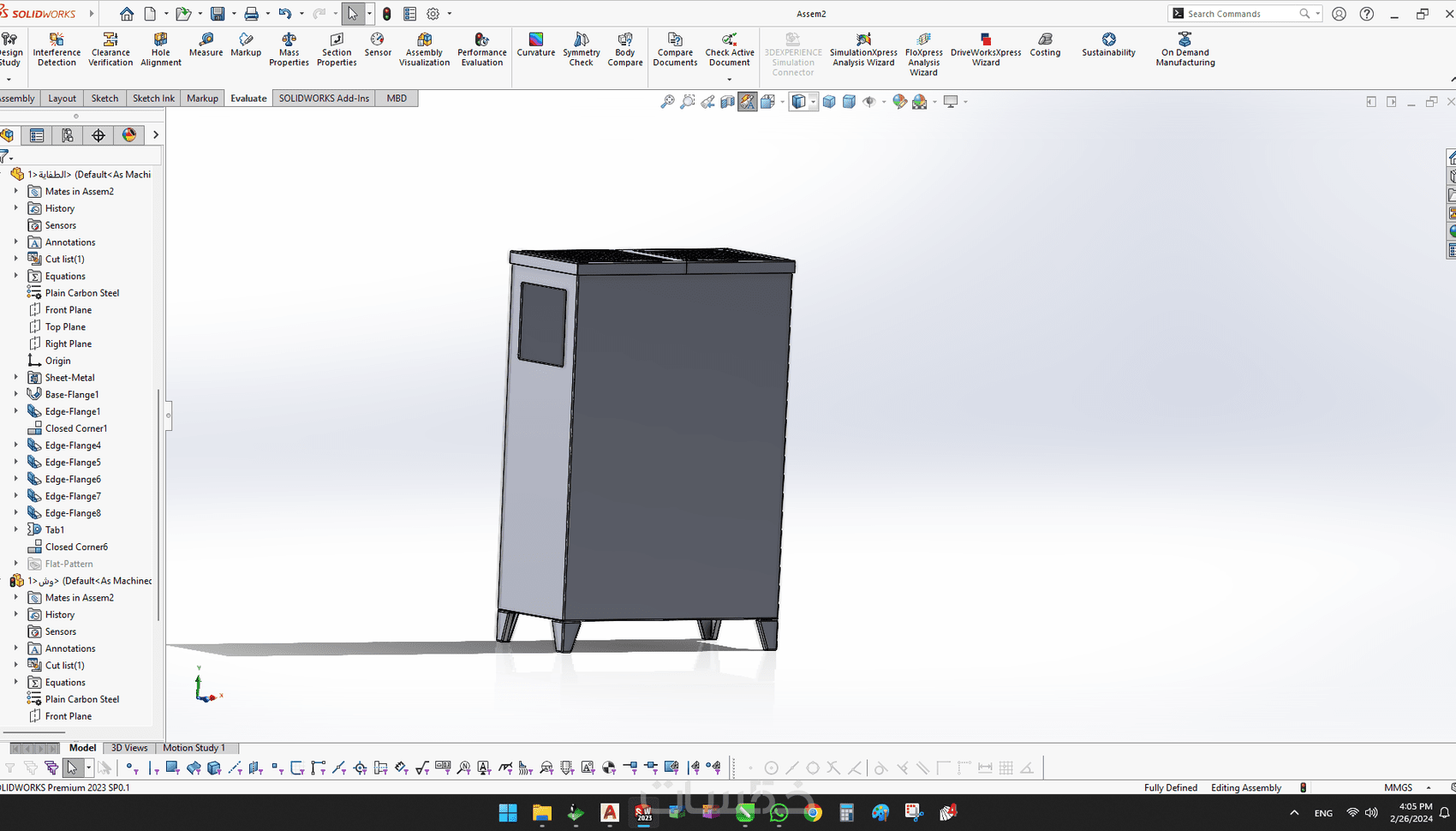 أستطيع تصميم اي شكل تريده على برنامج سوليد ورك (شيت ميتال)