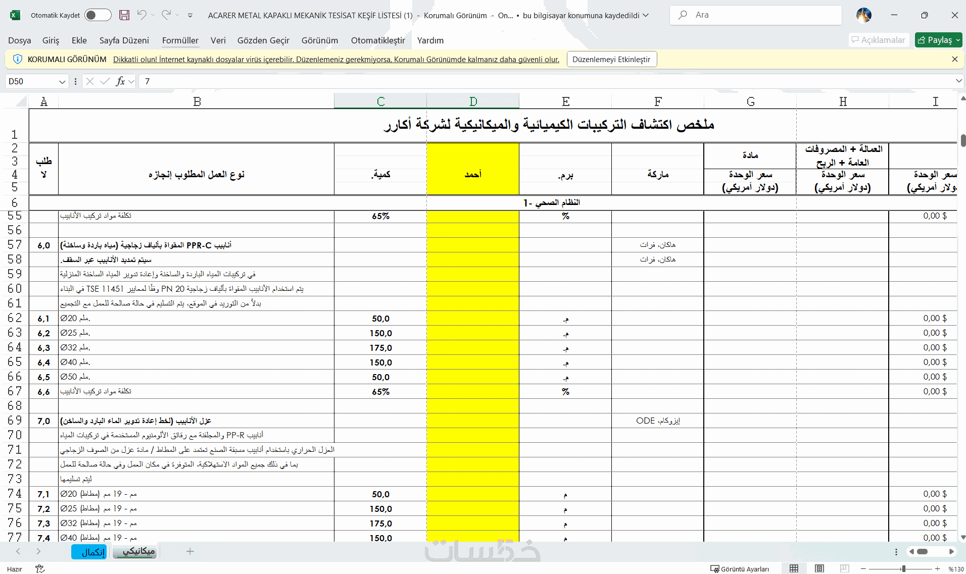 أقدّم خدمة استخراج كميات (Metraj) دقيقة واحترافية لمشاريع الأنظمة الميكانيكية اعتمادًا على المخططات الهندسية، لمساعدتك على التسعير الصحيح واتخاذ قرار دقيق قبل التنفيذ.