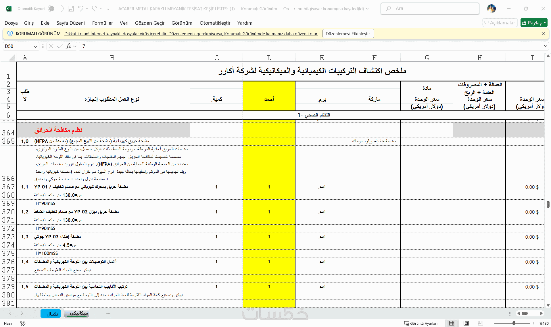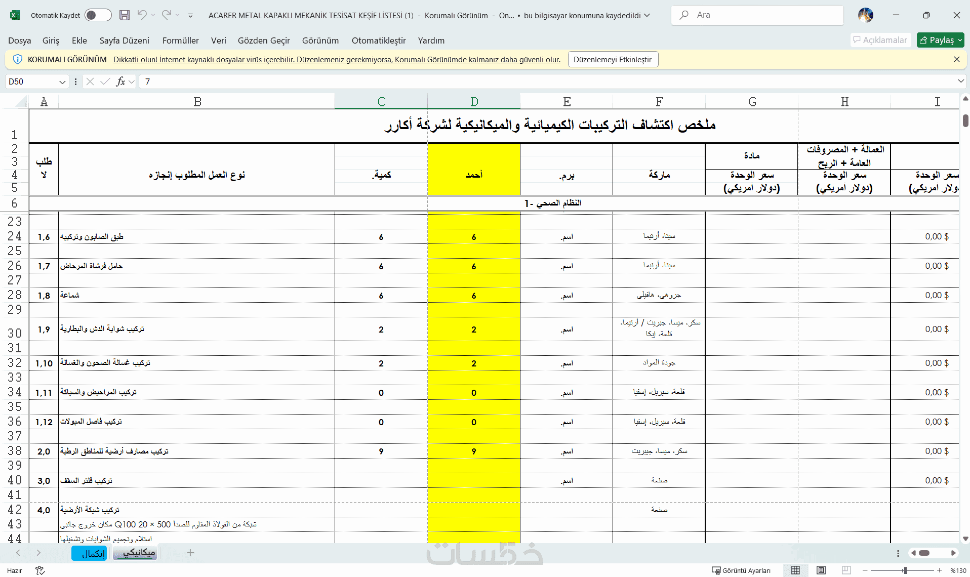 2-جداول Excel منظّمة وجاهزة للتسعير