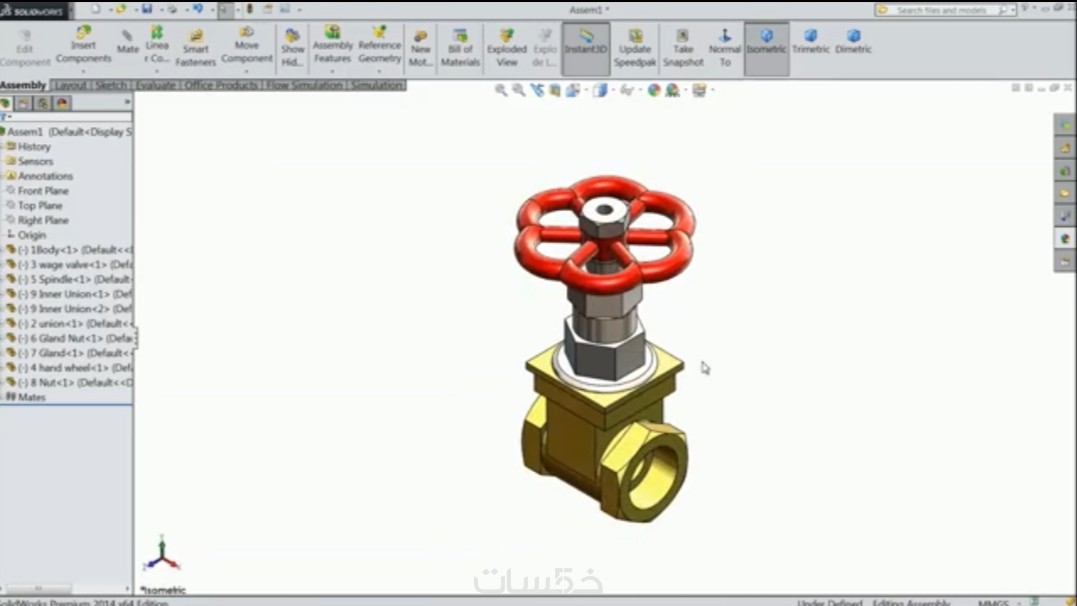 تجميع الأجزاء (Assembly): تجميع القطع المختلفة مع مراعاة حركتها الميكانيكية (Mates).