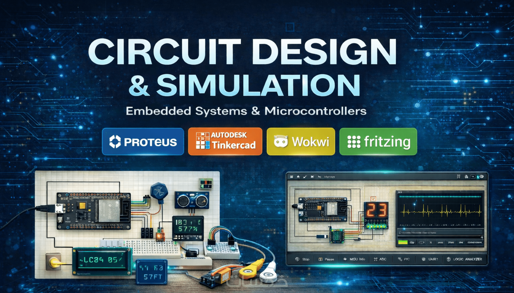 رسم المخططات الكهربائية (Schematic) باستخدام EasyEDA Pro، Eagle، KiCad أو Altium – بدقة عالية وتنظيم واضح للمكونات والإشارات.