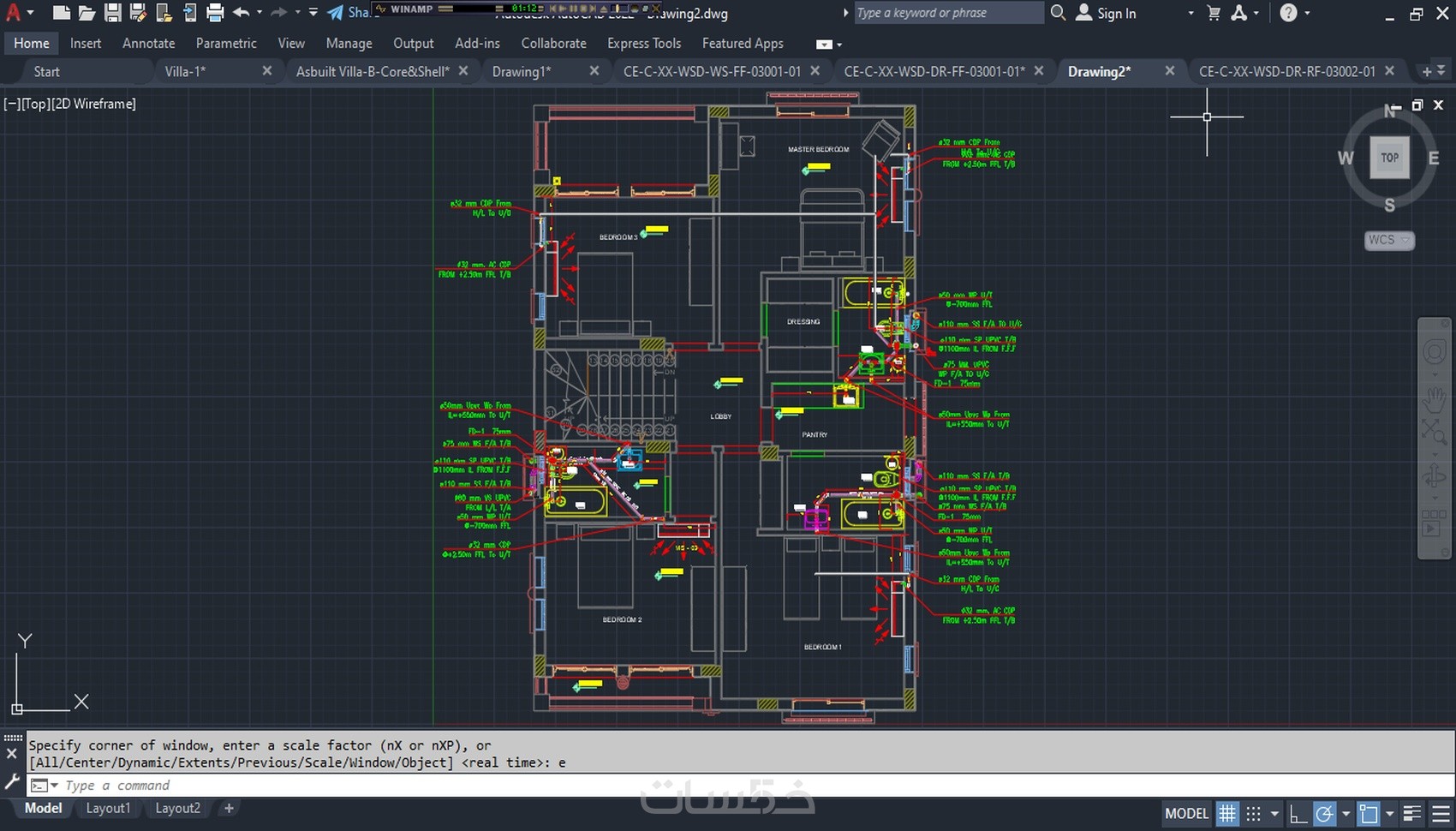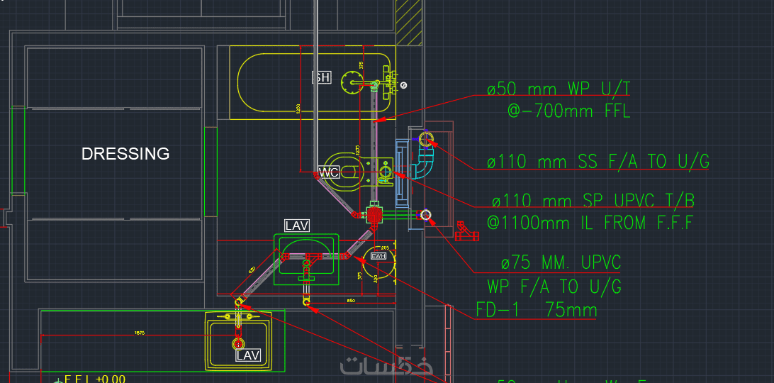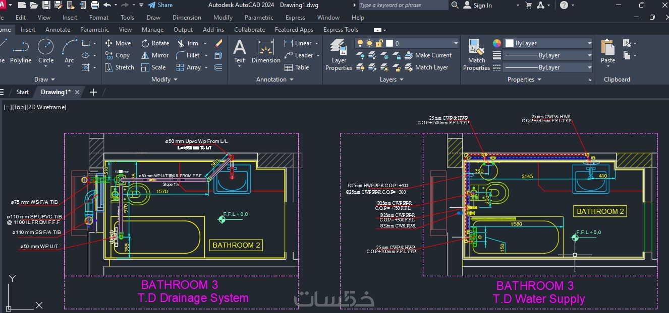1- استخدام برنامج أوتوكاد CAD لعمل تصميم لأنظمة الصرف و المياة للمشاريع المختلفة ( سكني - تجاري - مدارس - مستشفيات .... الخ )