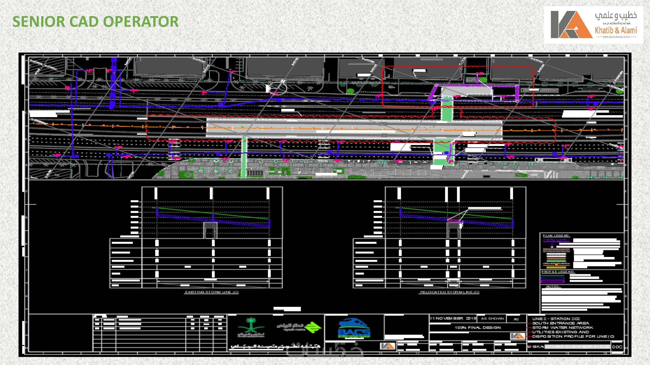 2- تنسيق القطاعات الطولية للطرق ووضع عليها أماكن الشبكات.